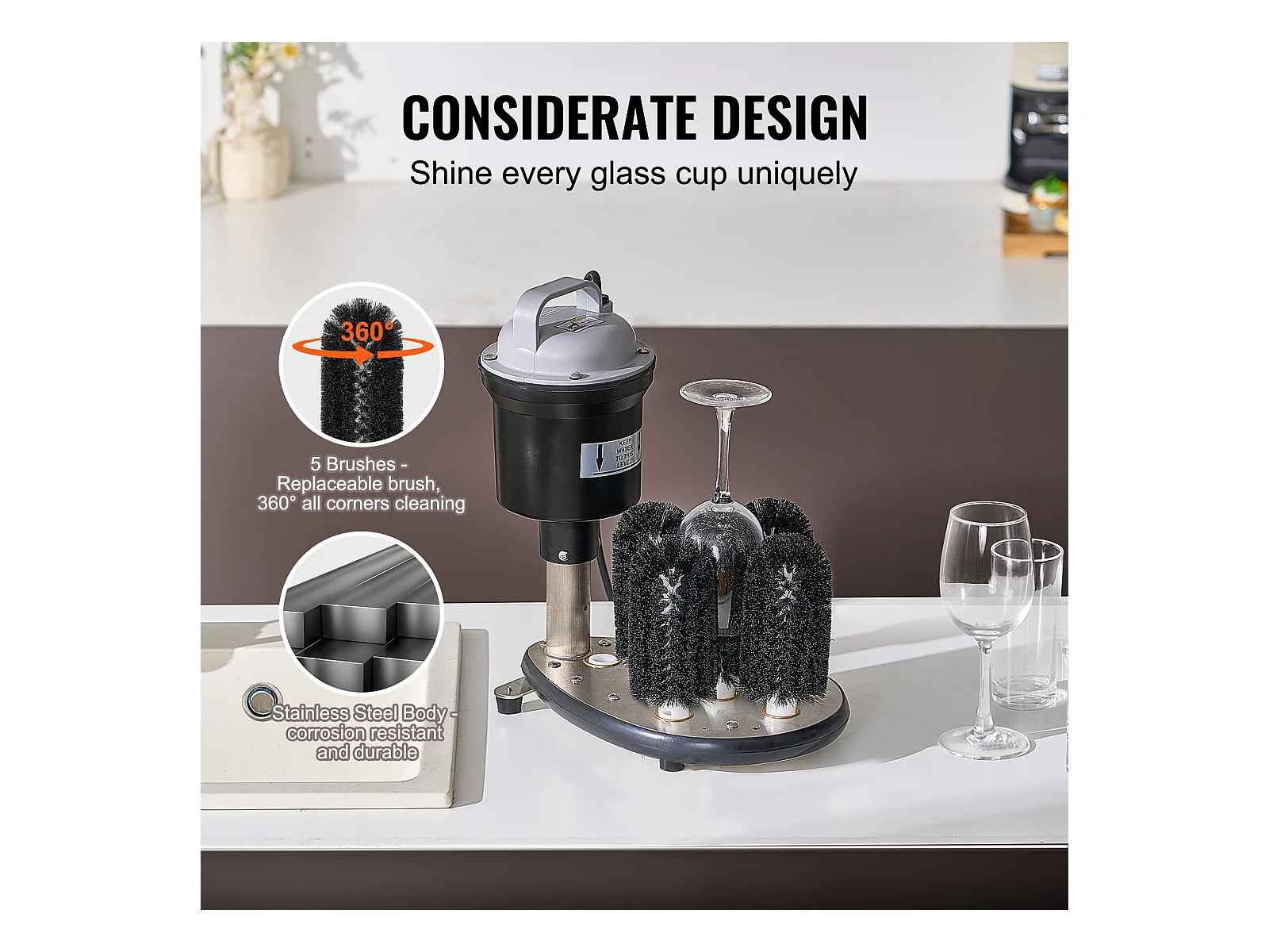 Wijnglaspolijster SucceBuy, 5 Borstels, 330 Glazen/uur, voor Bars en Restaurants