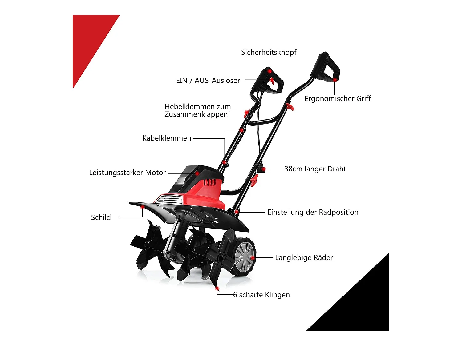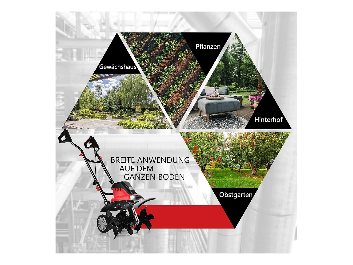 Elektrische grondfrees, tuinfrees, 6 hakmessen, 1500 W, 22 cm werkdiepte, 43 cm werkbreedte, 400 omw/mSF5709