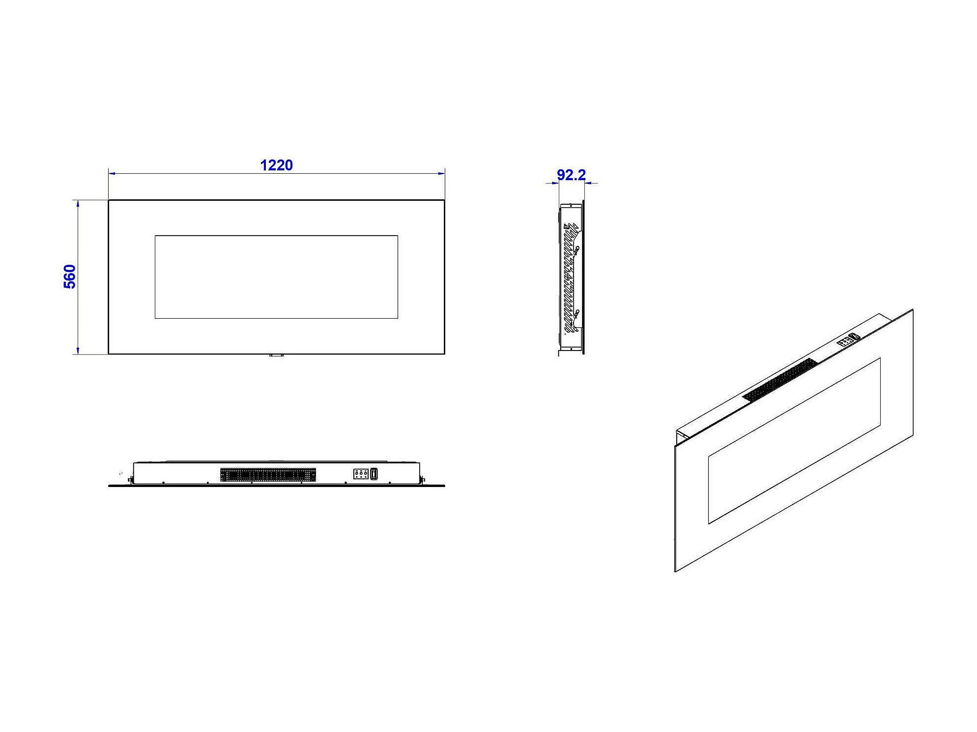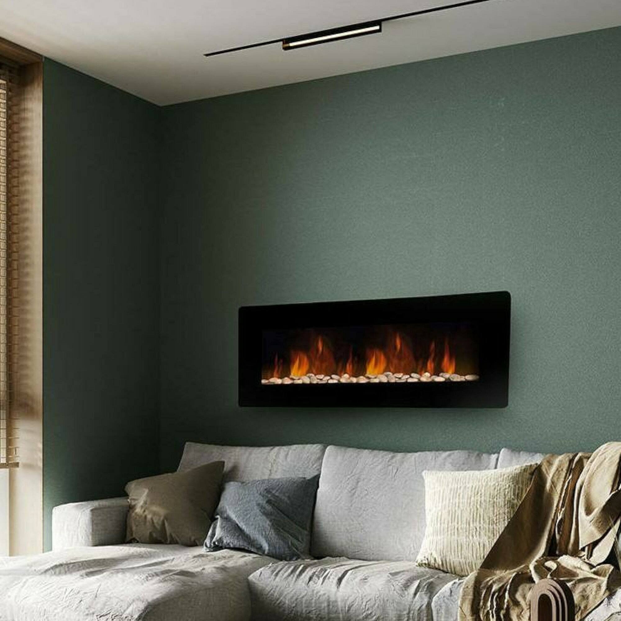 Elektrische haard Grimsvotn, Elektrisch fornuis, Elektrische wandhaard, Moderne open haard, Made in Italy, 11x127 h50 cm, Zwart