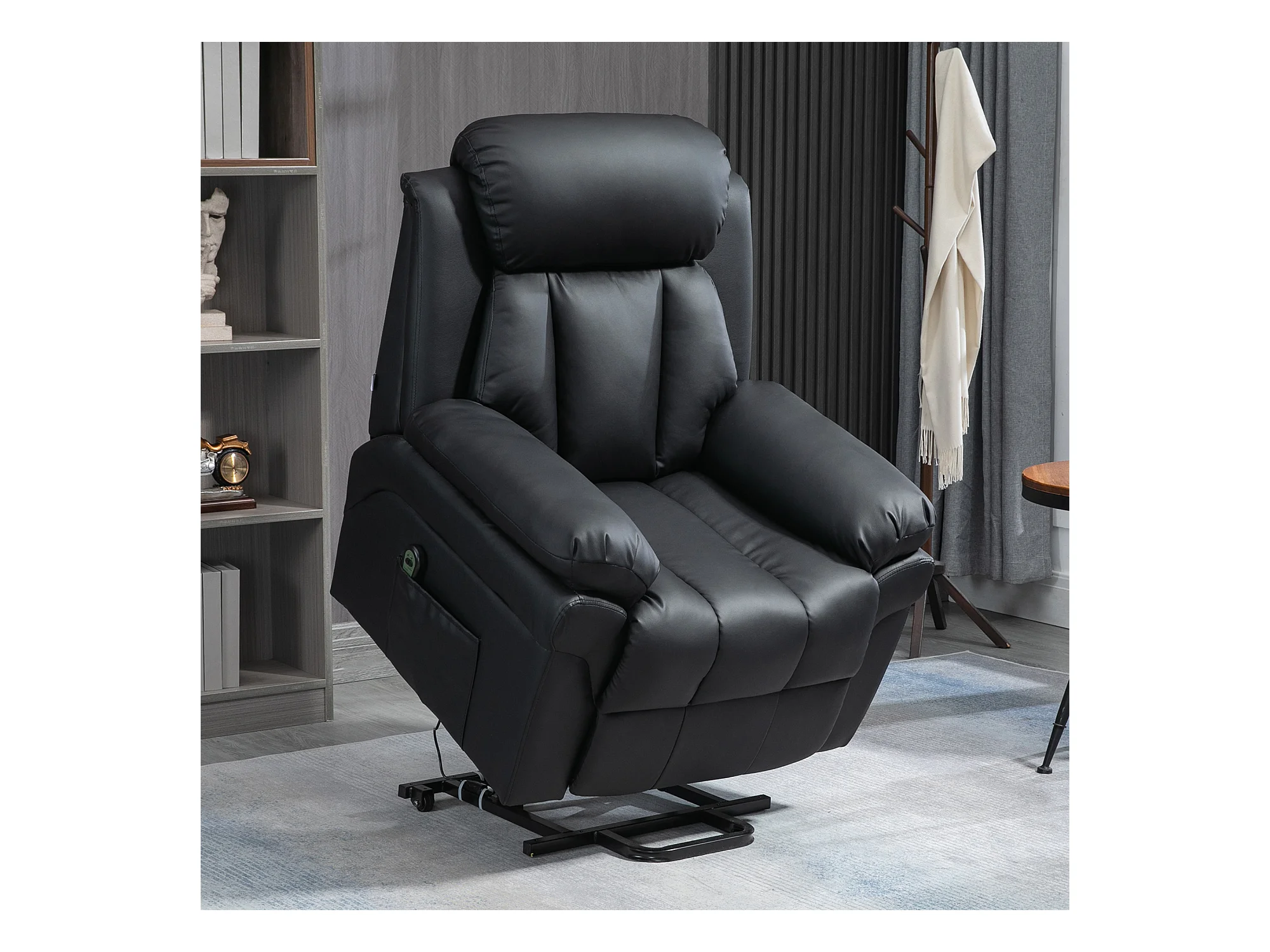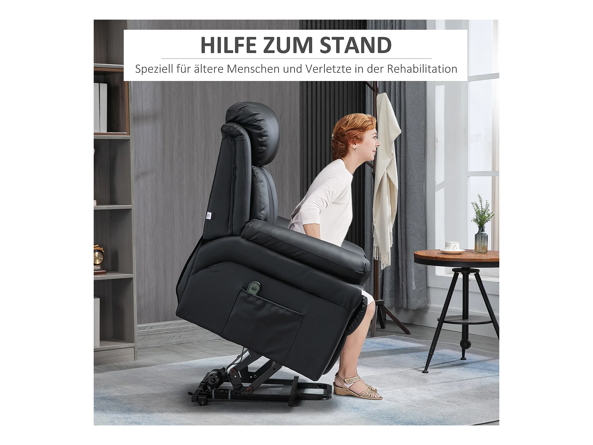 Elektrische relaxfauteuil met liftfunctie, verstelbaar met afstandsbediening, in zwart imitatieleer (93x96x105 cm)