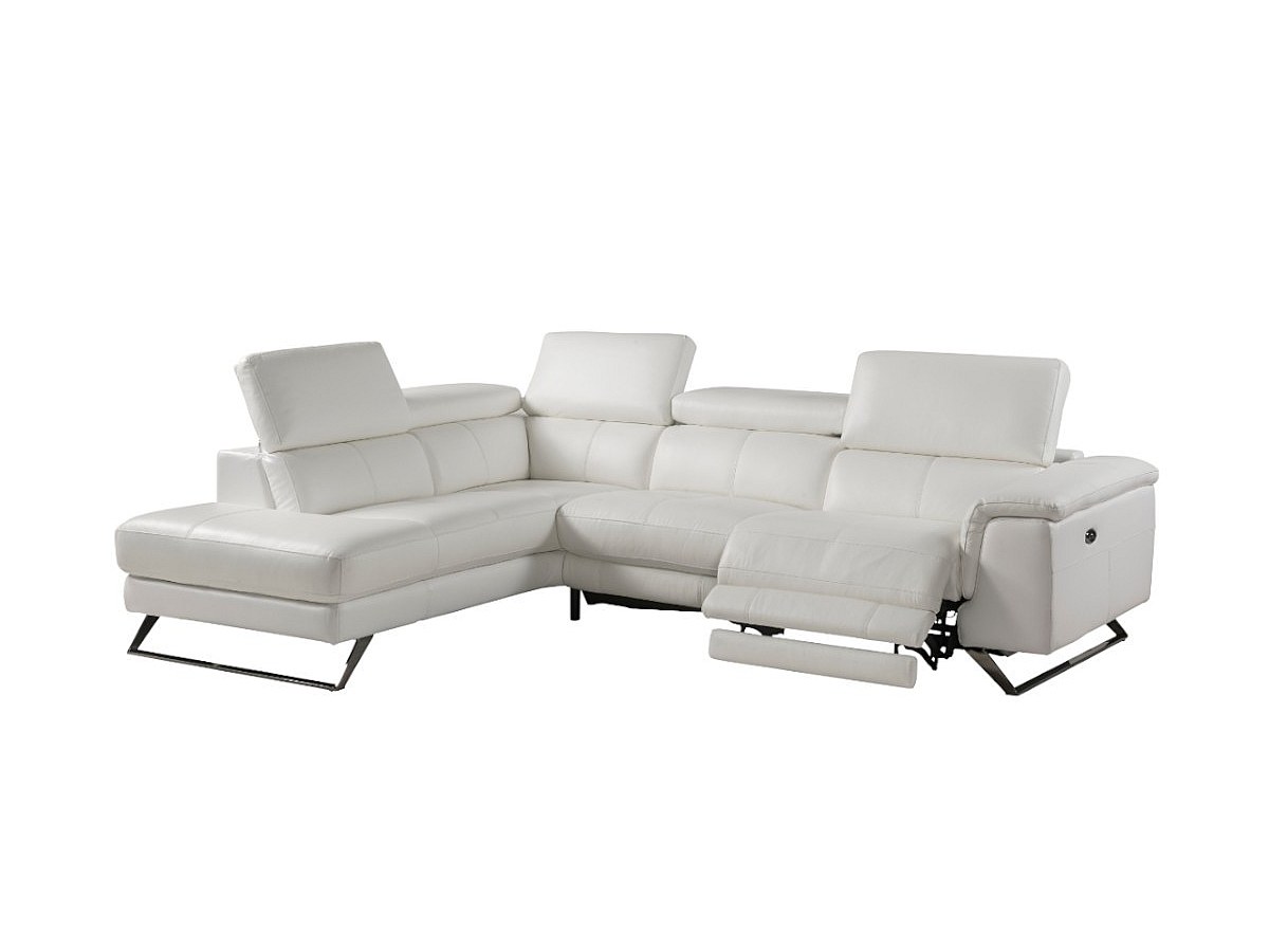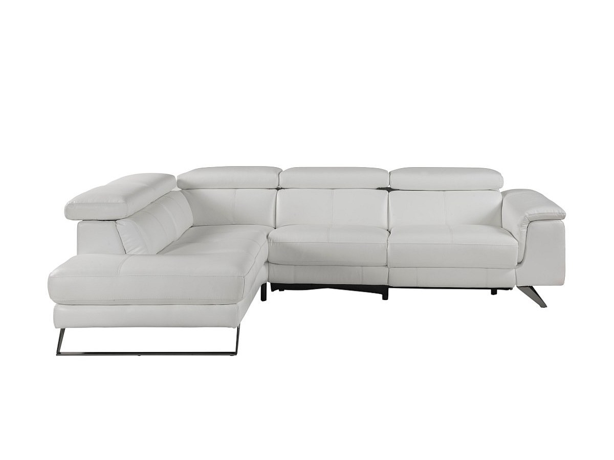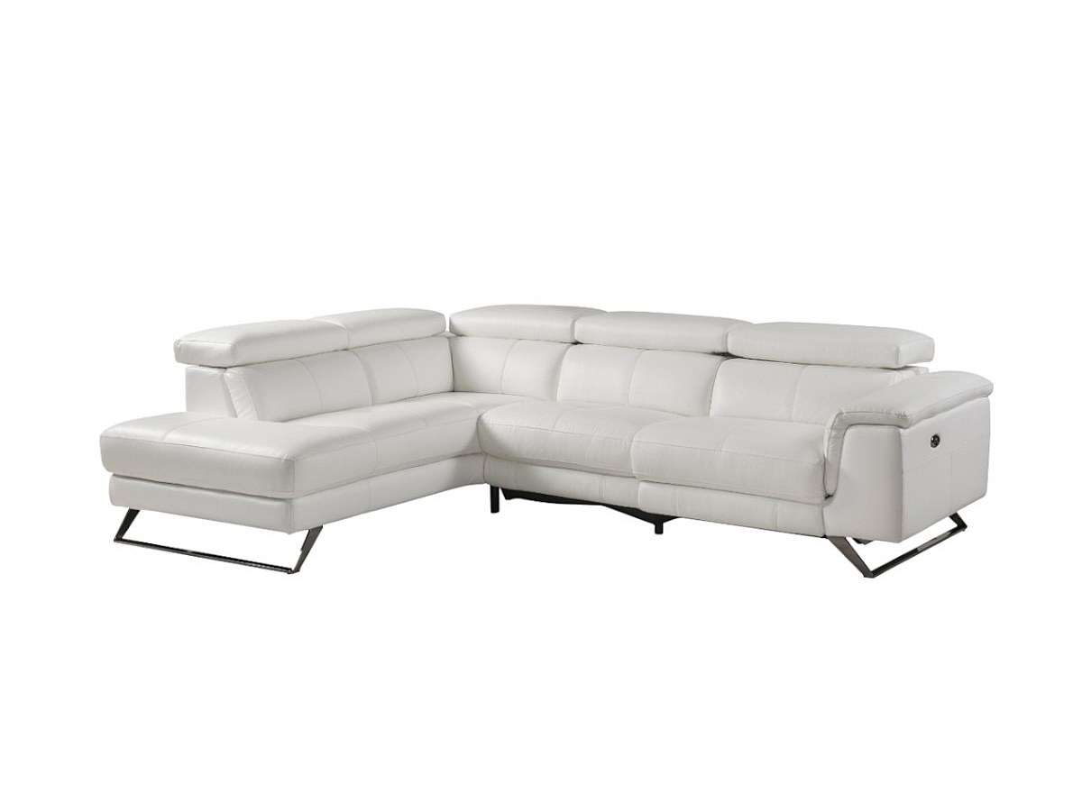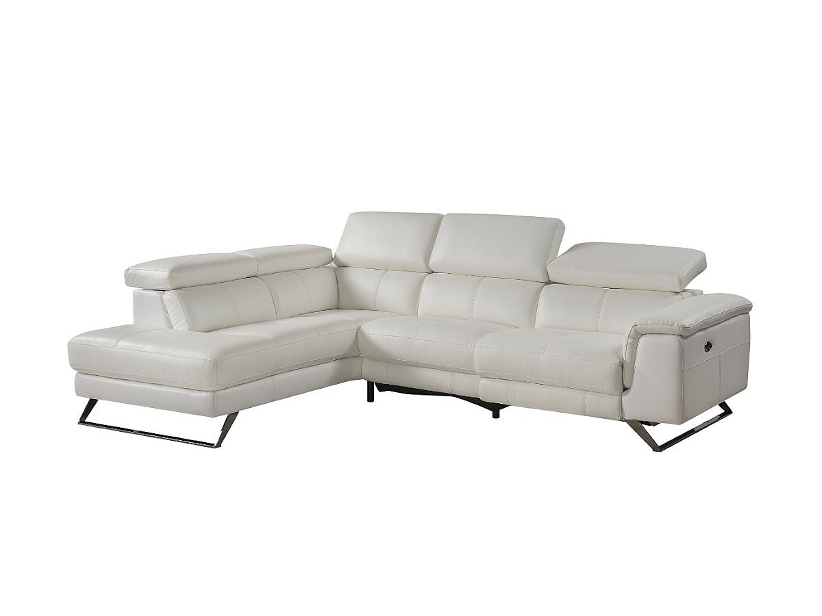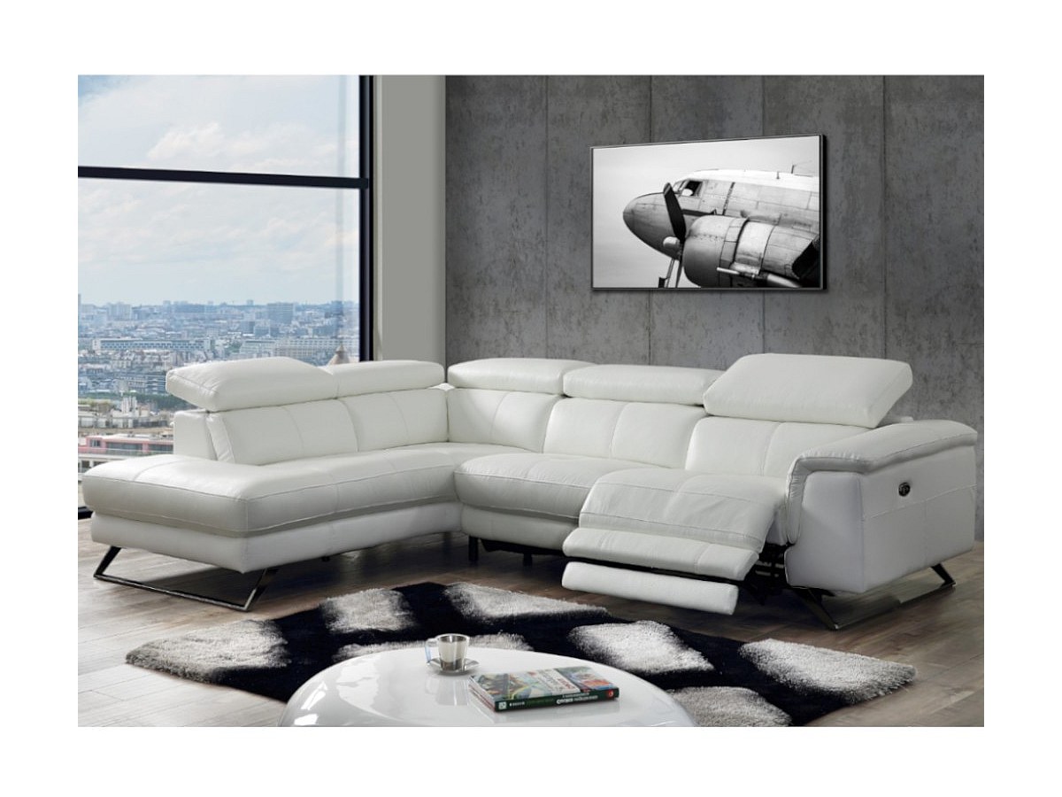 Elektrische relaxhoekbank van leer met hoofdsteunen BREYT - Wit - Linkerhoek