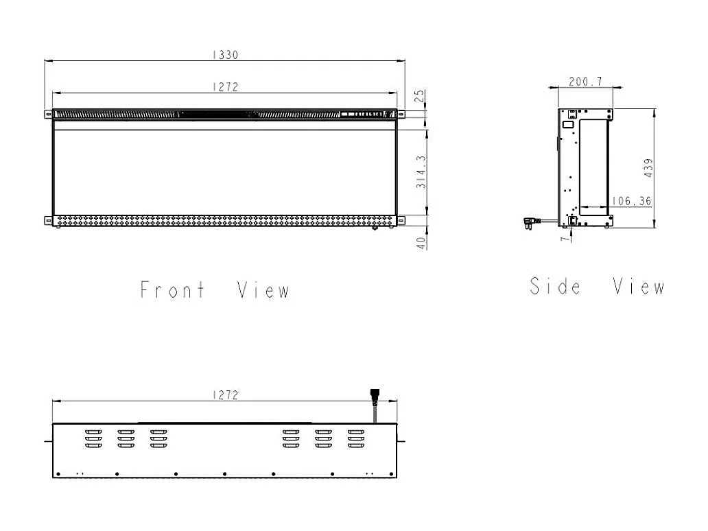 Elektrische wandhaard, 3-zijdige inbouwhaard, BOSTON130 L127 x D20 x H44