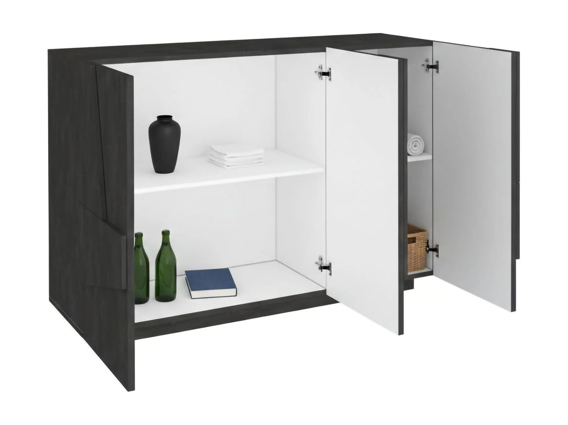 Dmora Dressoir Elia 38x121x86h cm Leigrijs 3 Planken 5 Vakken, 3 Deuren Made in Italy