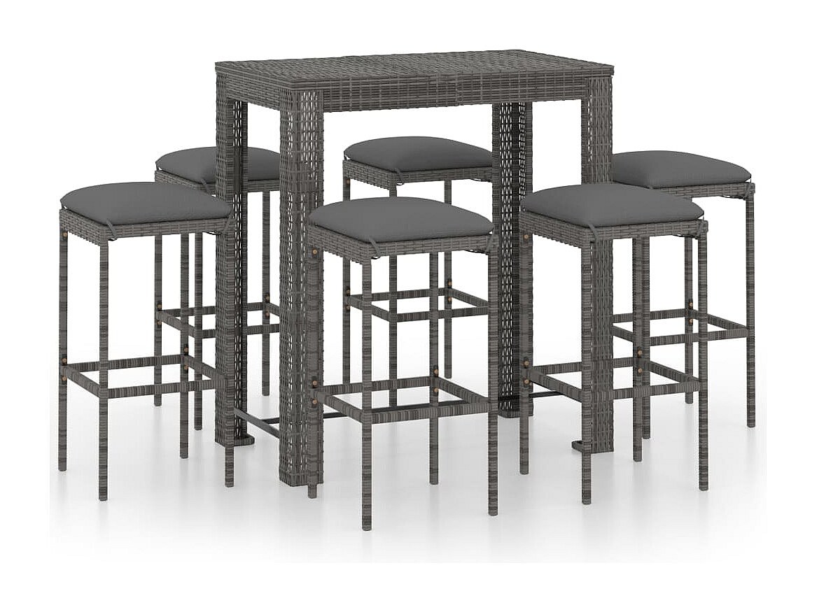Elisah 7-delige Tuinbarset met kussens poly rattan grijs