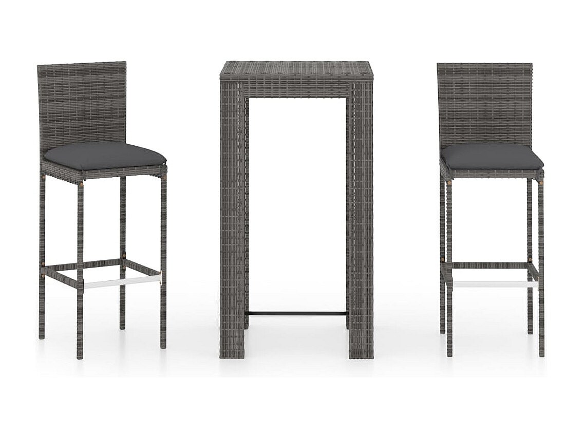 Thylvi 3-delige Tuinbarset met kussens poly rattan grijs