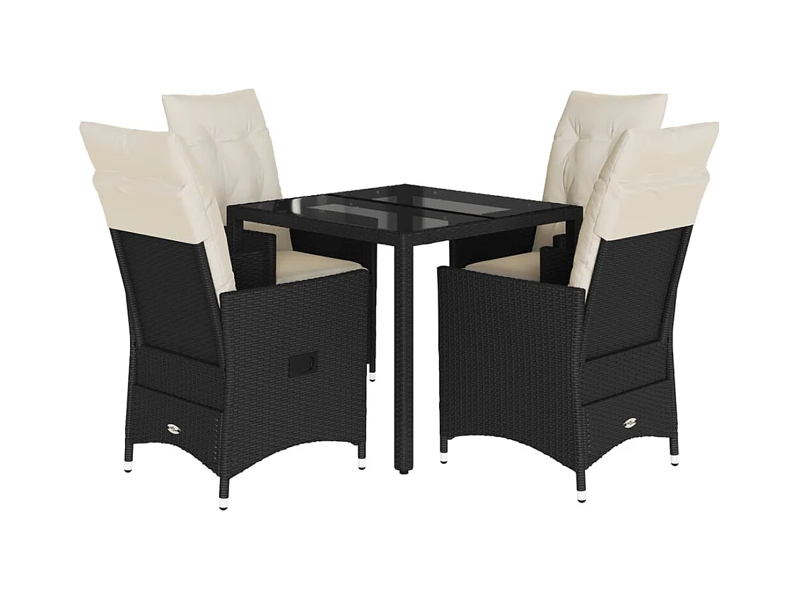 Stafford Springs 5-delige Tuinset met kussens poly rattan en glas zwart