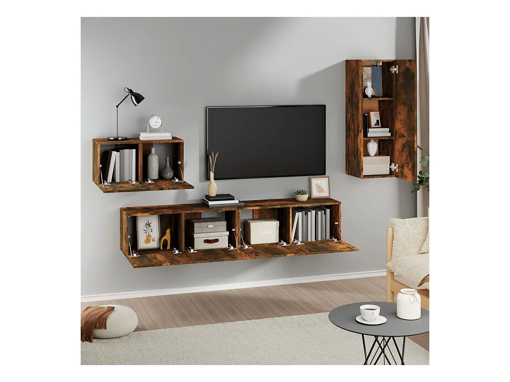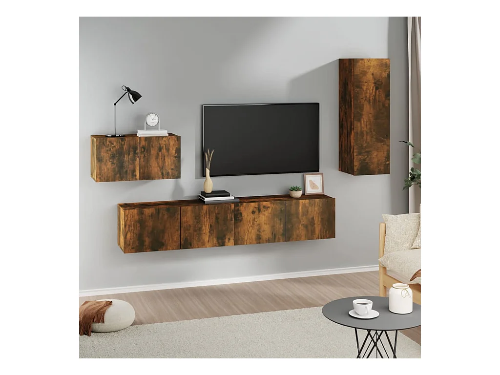 Elwin 4-delige Tv-meubelset bewerkt hout gerookt eikenkleurig