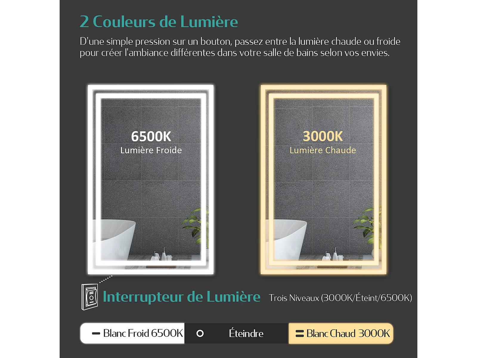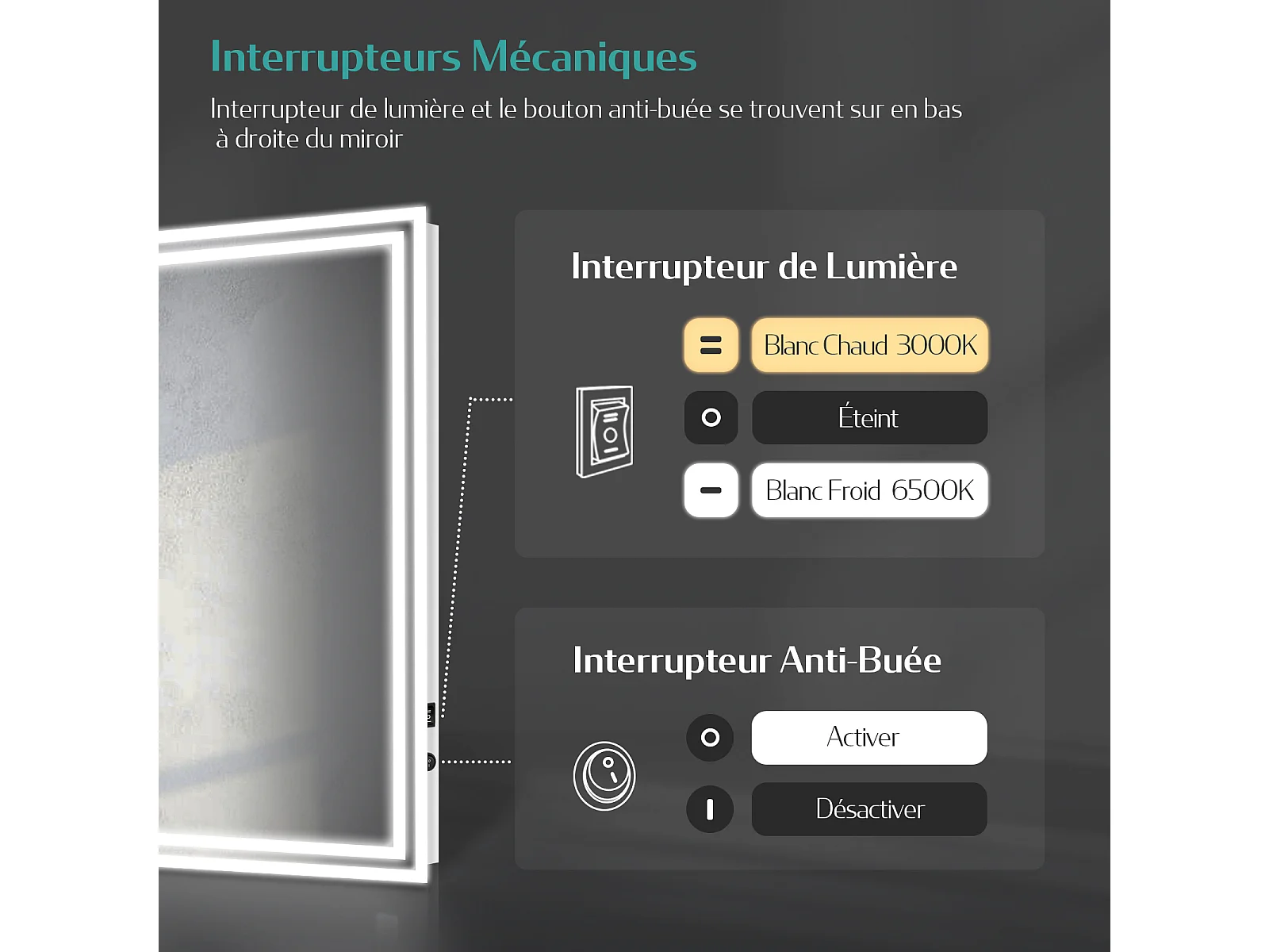 EMKE Badkamerspiegel LED 120x60cm anti-condens dubbele verlichting