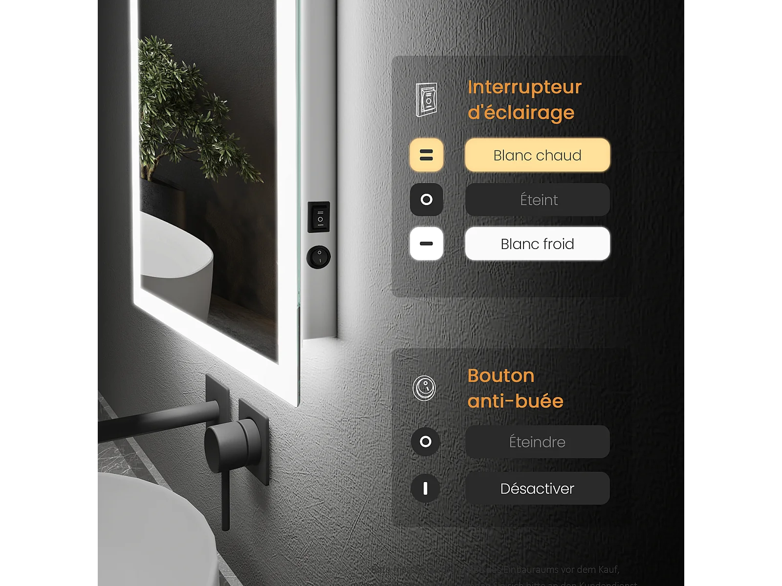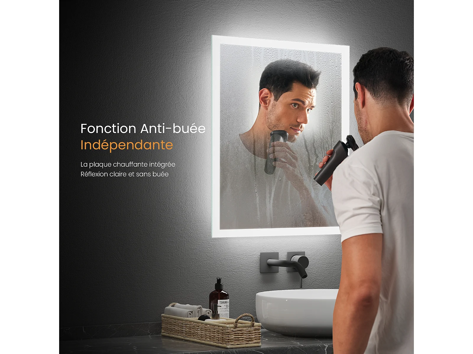 EMKE Badkamerspiegel LED 80x60cm anti-condens dubbele verlichting