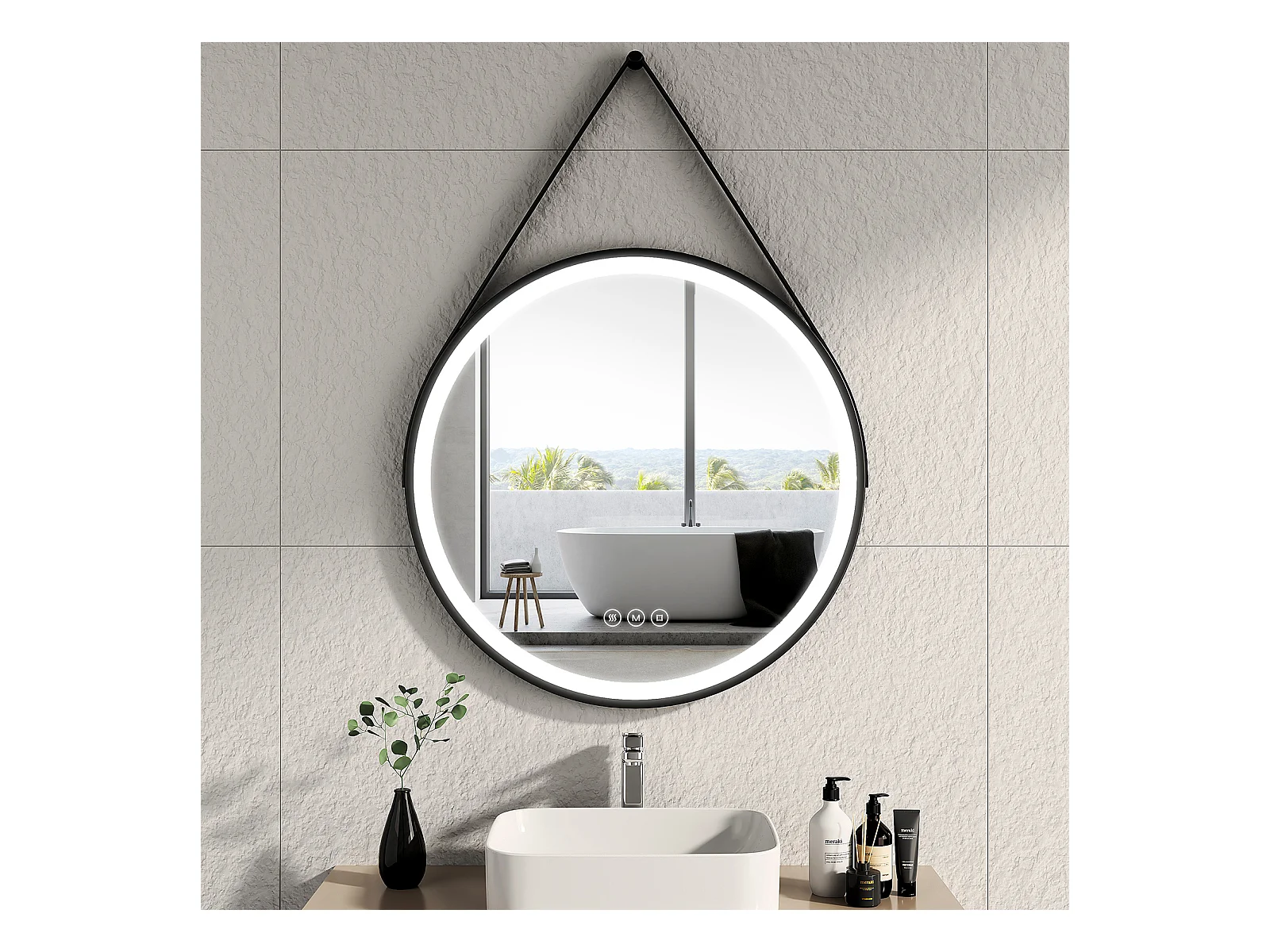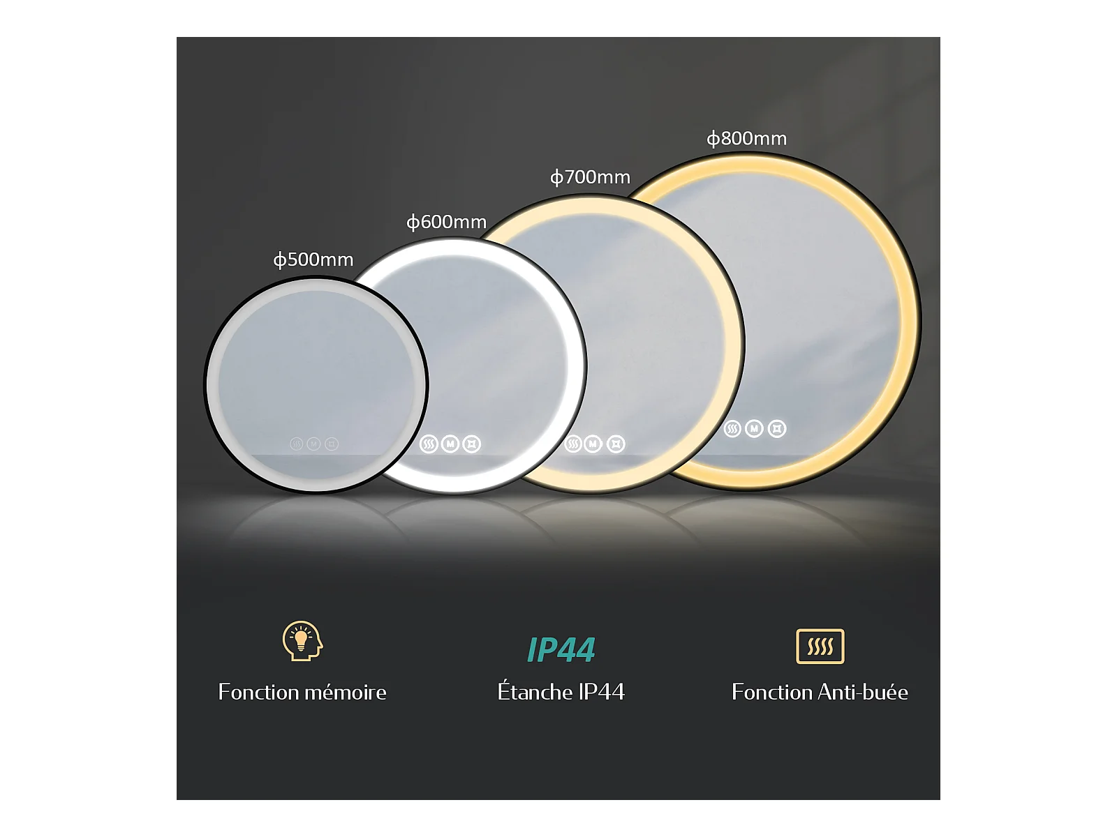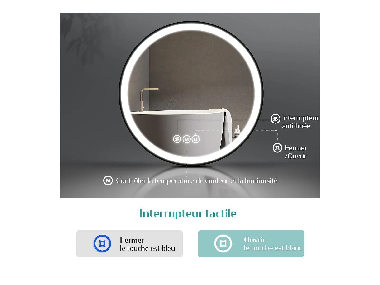 Ronde verlichte badkamerspiegel met dimbare LED en 4 aanraakgevoelige knoppen - anti-condens - 80 cm