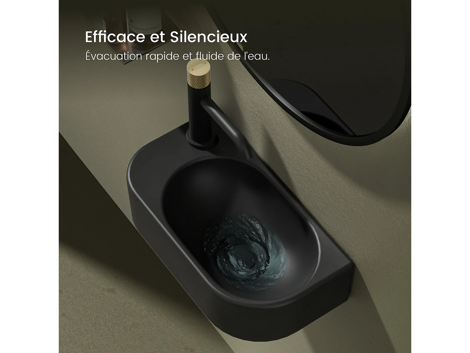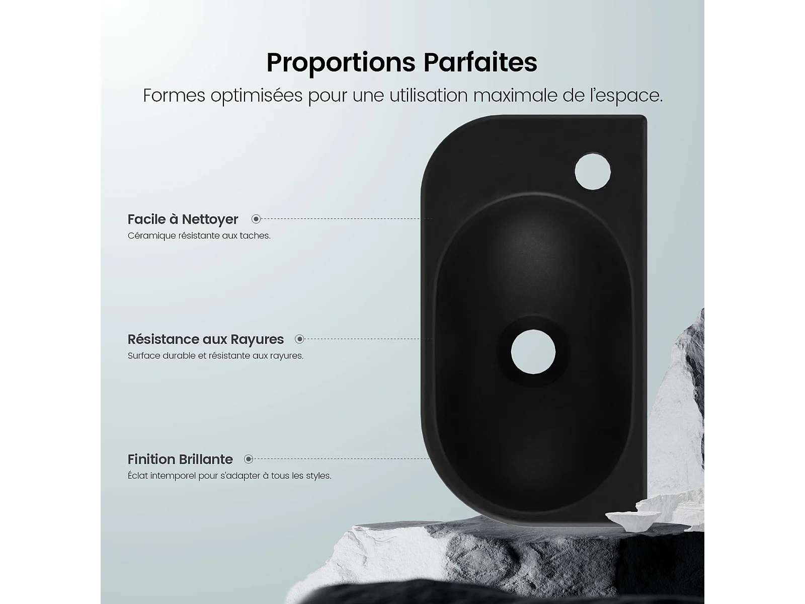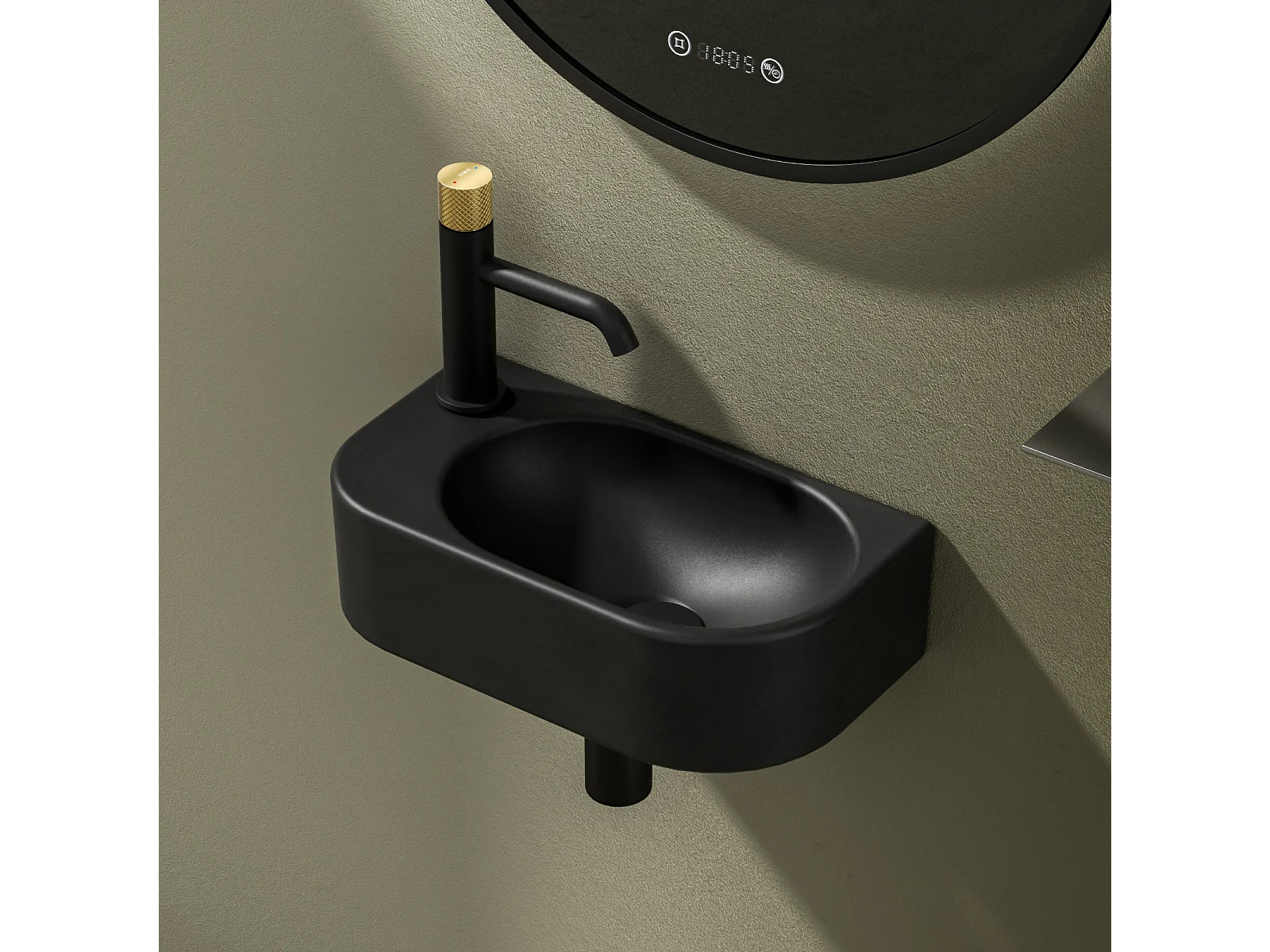EMKE Badkamerwastafel 400 x 215 x 120 mm, Keramische wastafel met afgeronde hoeken, Kraangat rechts, Mat zwart