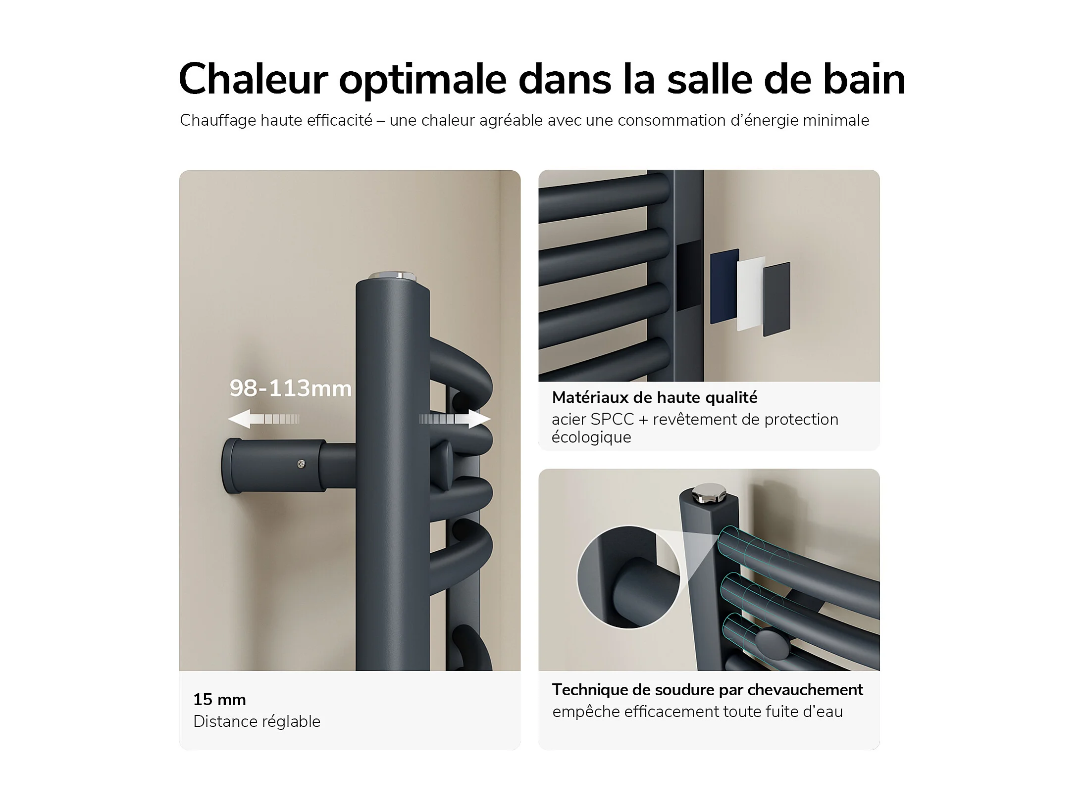 EMKE Elektrische handdoekradiator antraciet WiFi 120x40cm 500W IP44 thermostaat Tuya app smart life home