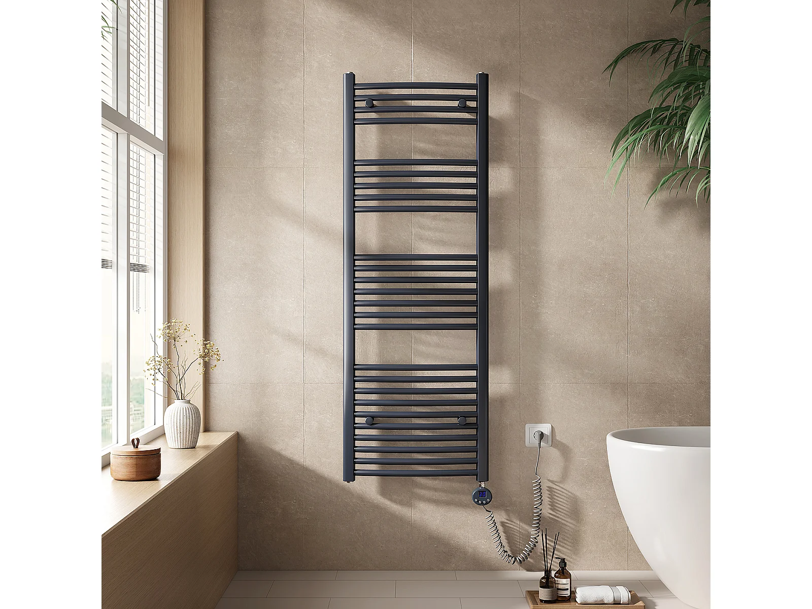 EMKE Elektrische handdoekradiator antraciet WiFi 140x50cm 600W IP44 thermostaat Tuya app smart life home