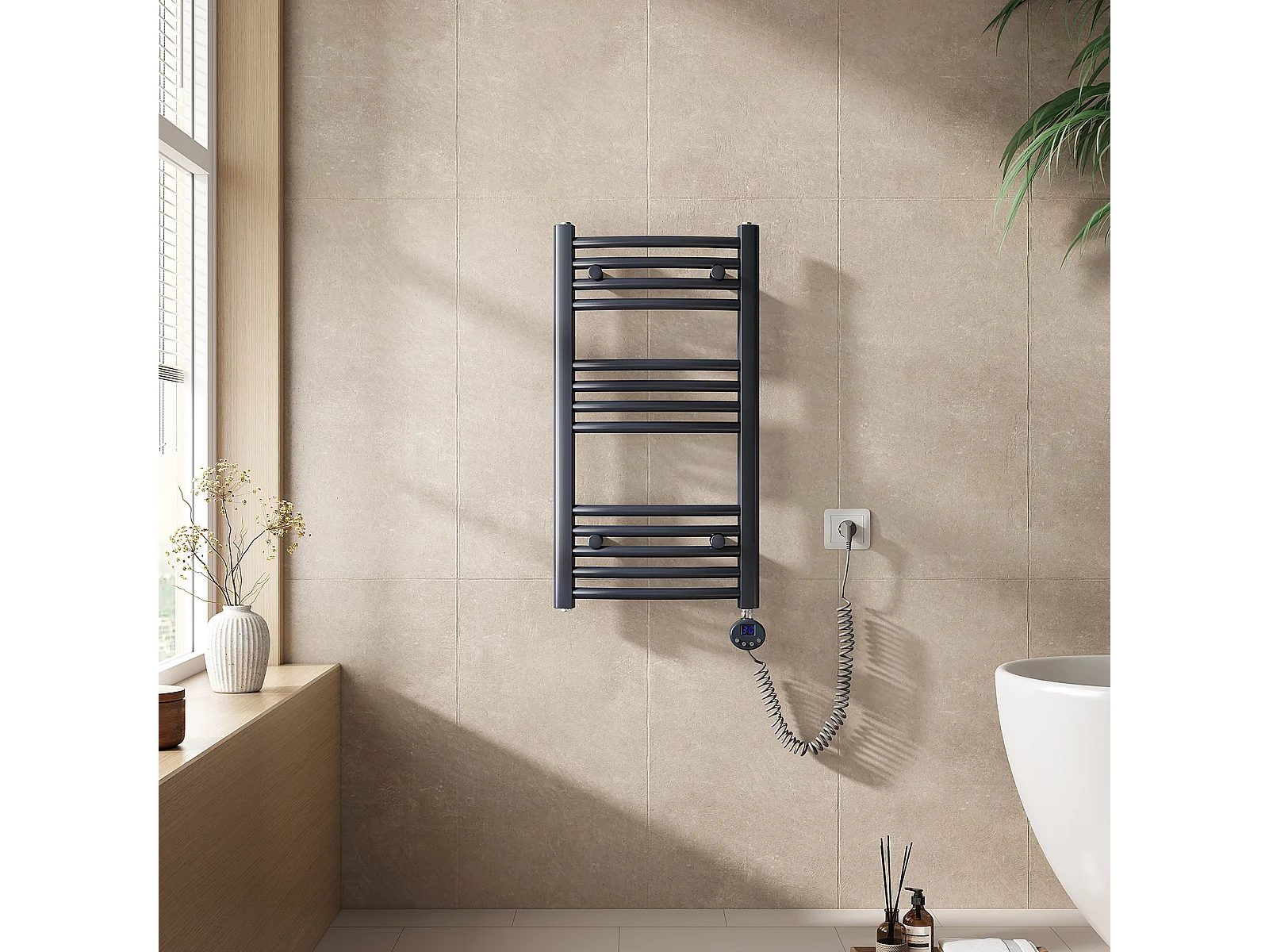 EMKE Elektrische handdoekradiator antraciet WiFi 75x40cm 300W IP44 thermostaat Tuya app smart life home