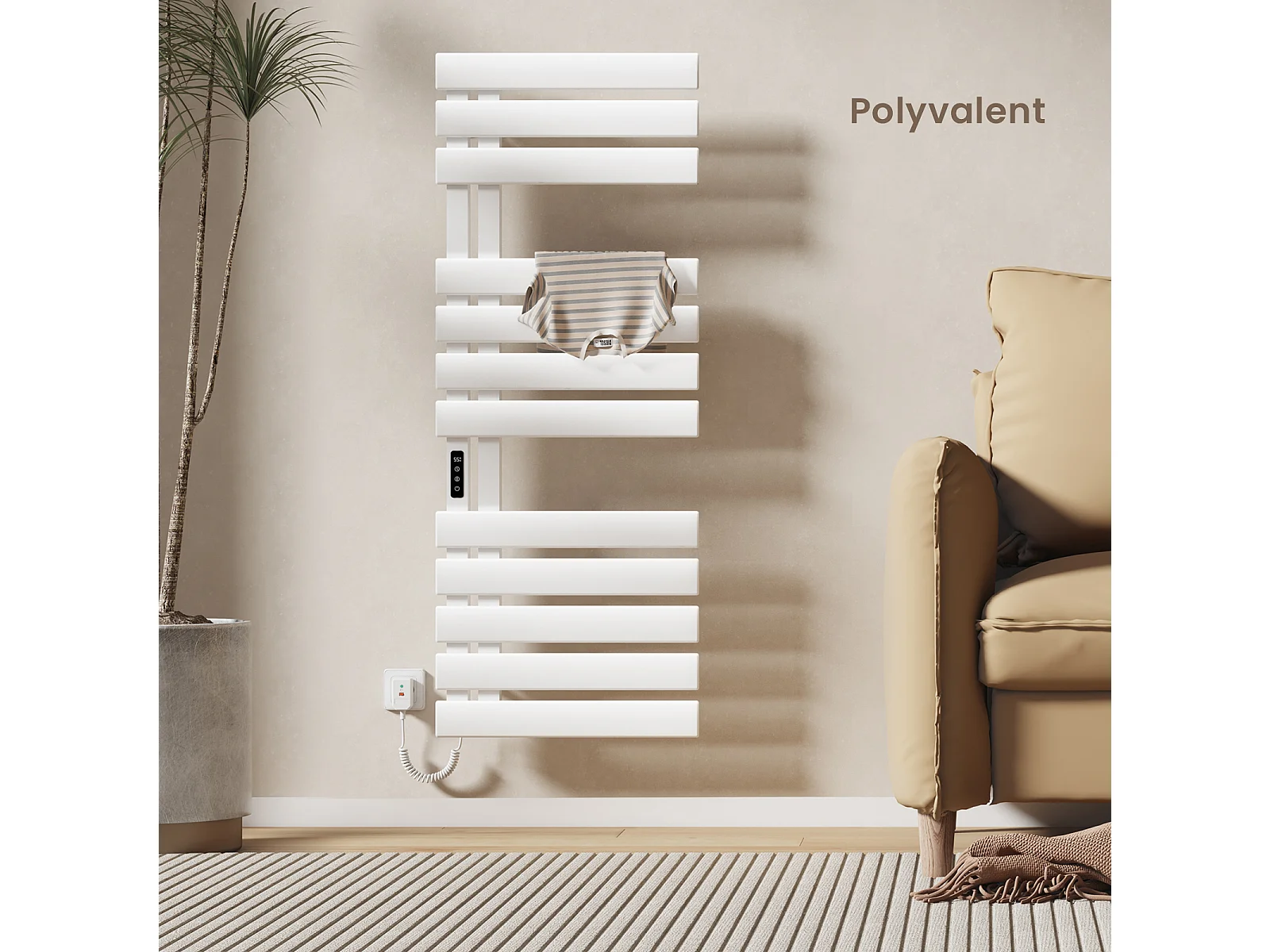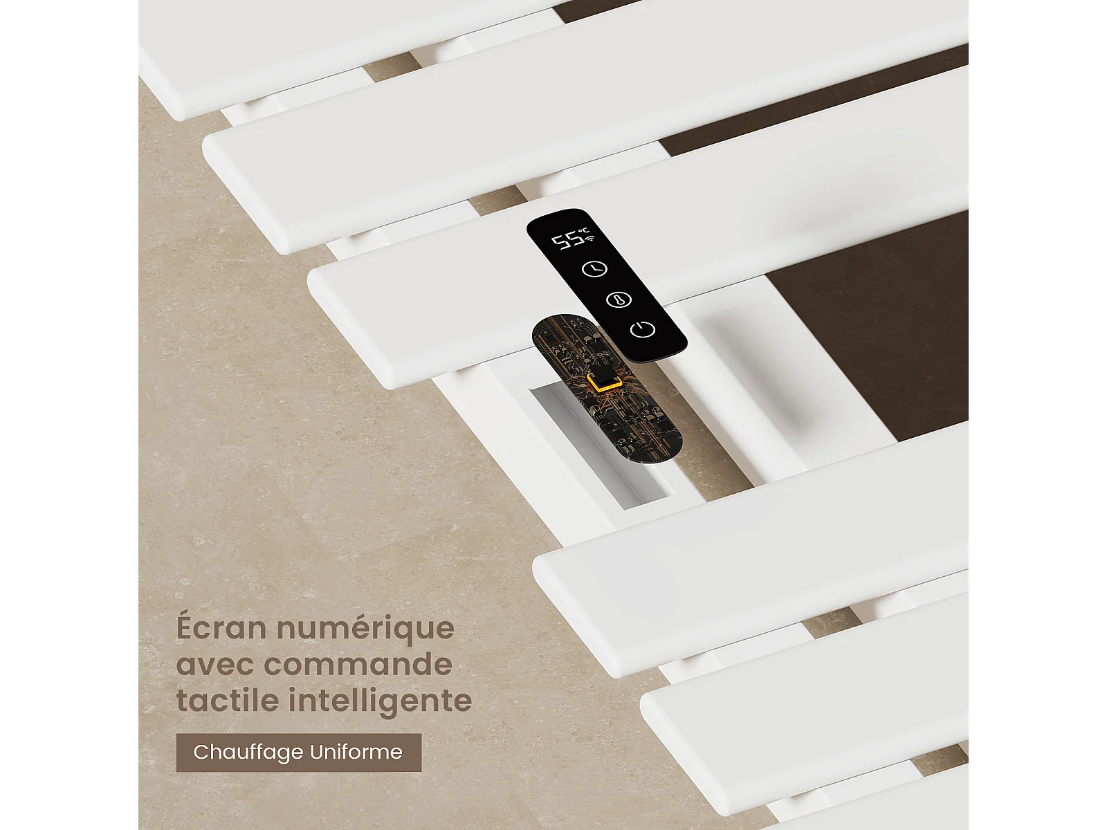 EMKE Elektrische handdoekradiator wit WiFi 130x50cm 440W carbon LCD-scherm app-bediening asymmetrisch