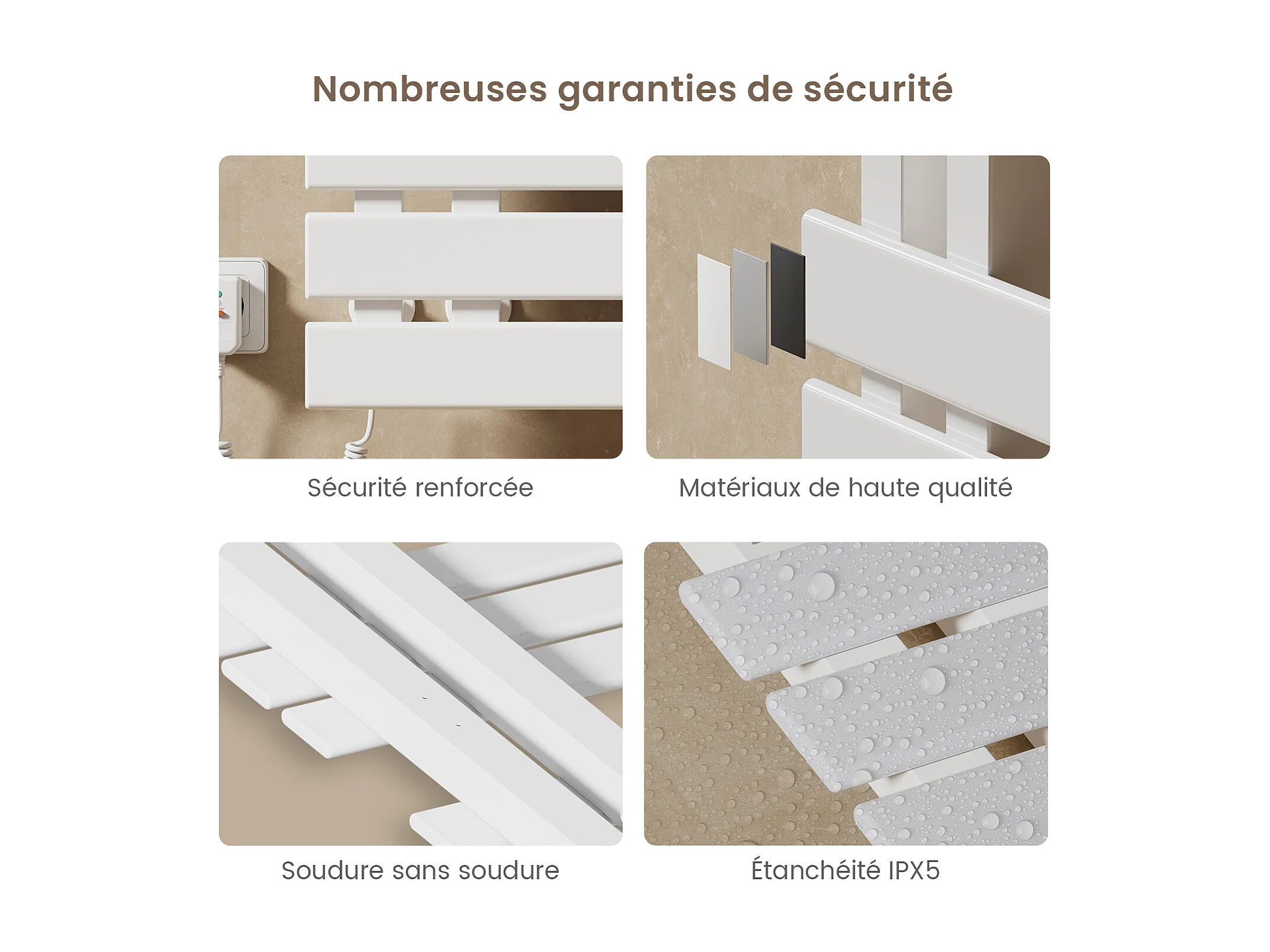 EMKE Elektrische handdoekradiator wit WiFi 85x40cm 230W carbon LCD-scherm app-bediening asymmetrisch