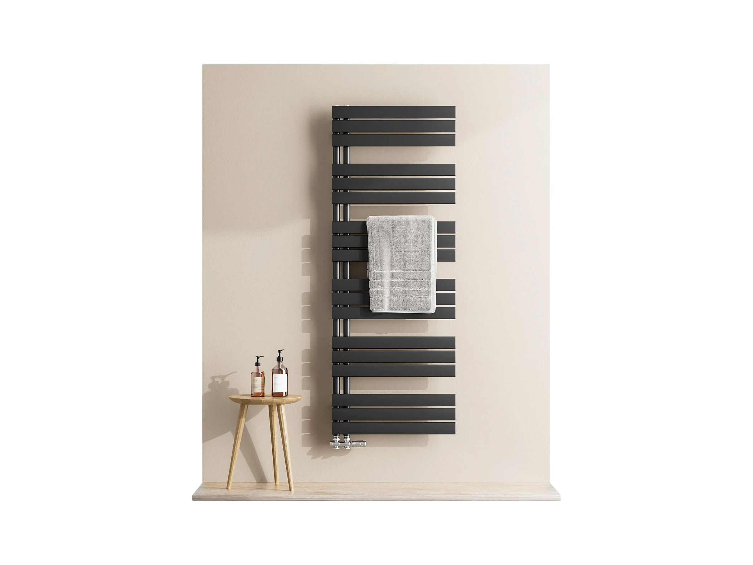EMKE Handdoekradiator voor Warm Water, Plat Paneel, Handdoekradiator met Laterale Aansluiting, Zwart 1041x600mm 639Watt