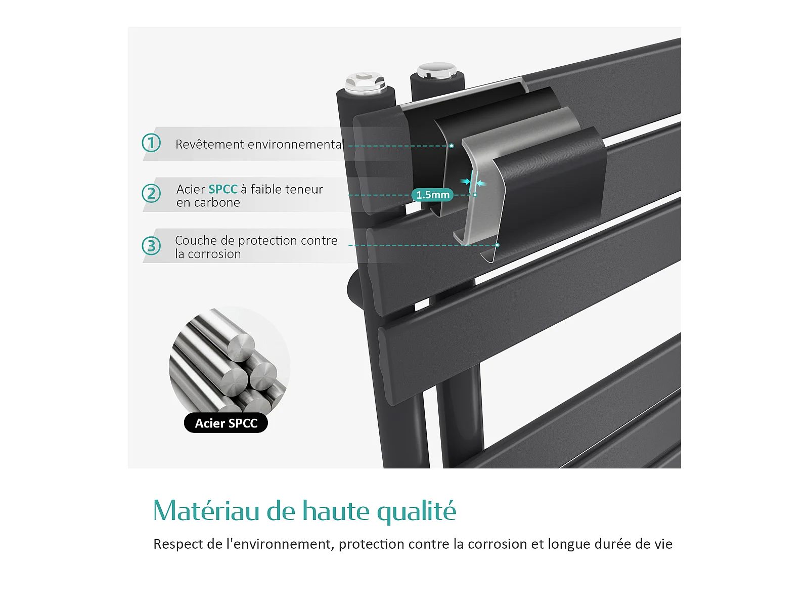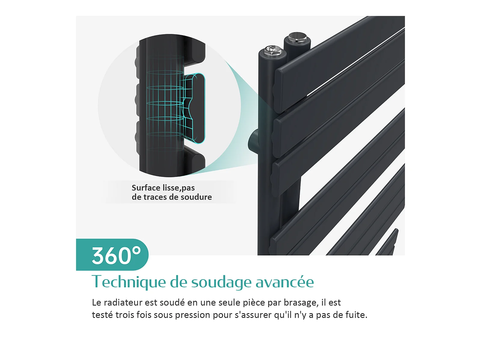 EMKE Elektrische Handdoekradiator 1000 x 500 mm, Zwart 350W, Badkamer Wandmontage