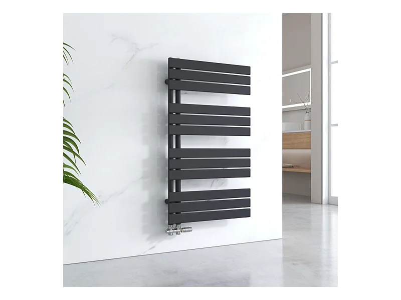 EMKE Handdoekradiator voor Warm Water, Plat Paneel, Handdoekradiator met Laterale Aansluiting, Zwart 1041x600mm 639Watt