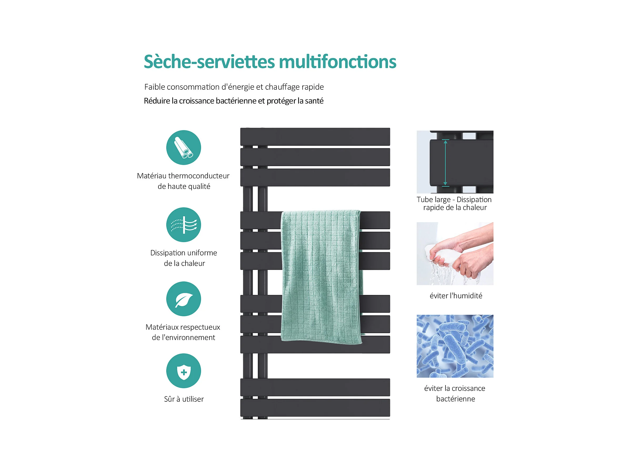 EMKE Elektrische Handdoekradiator 1000 x 500 mm, Zwart 350W, Badkamer Wandmontage