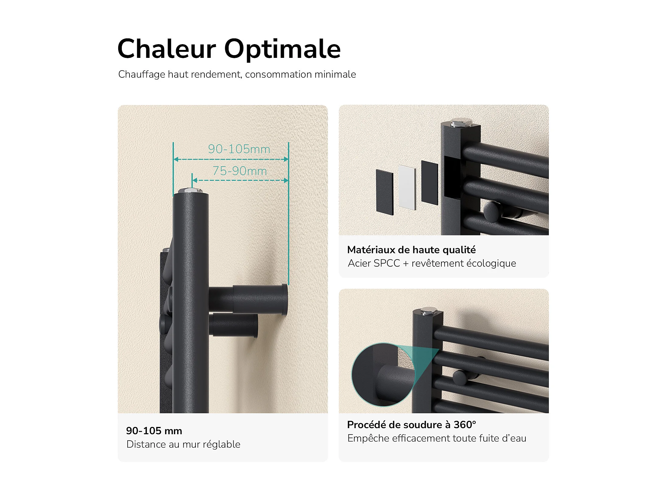 EMKE Handdoekradiator warm water antraciet 160 x 60 cm 761W midden en zijaansluiting