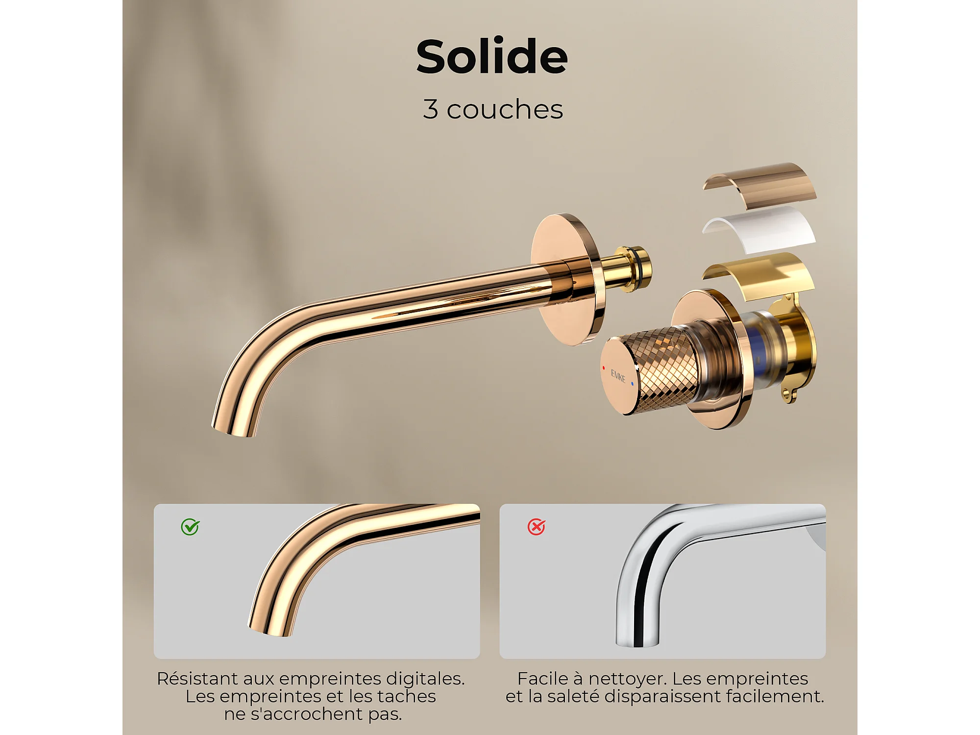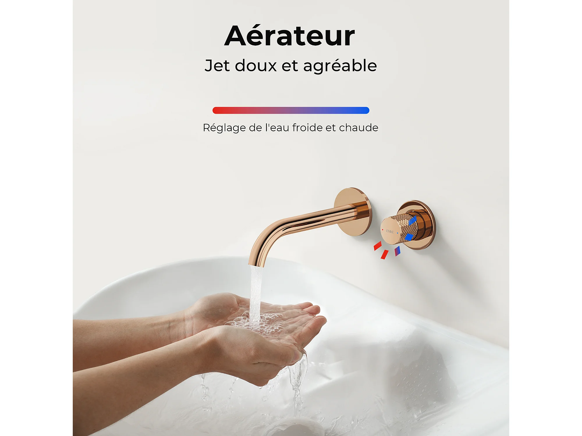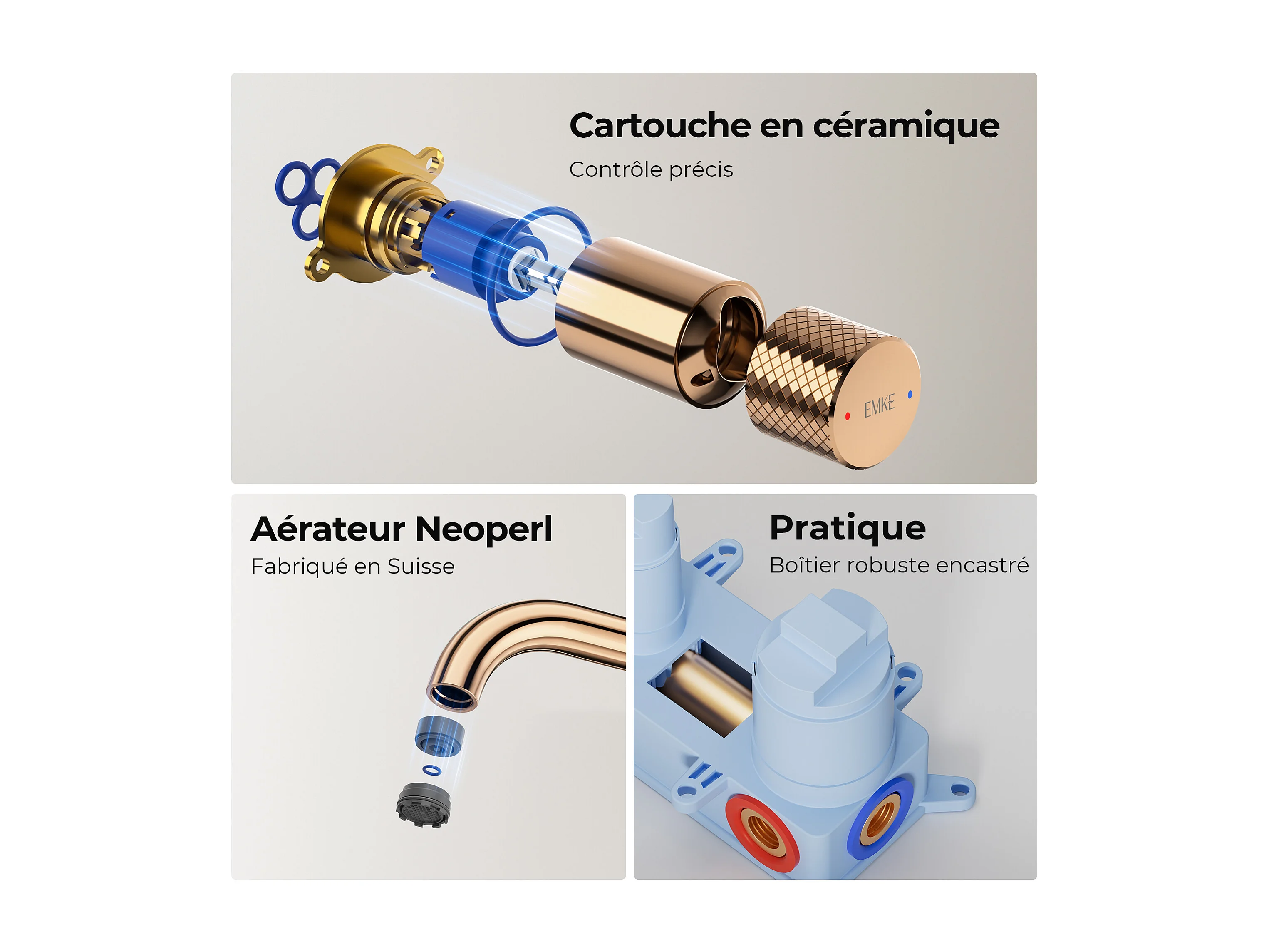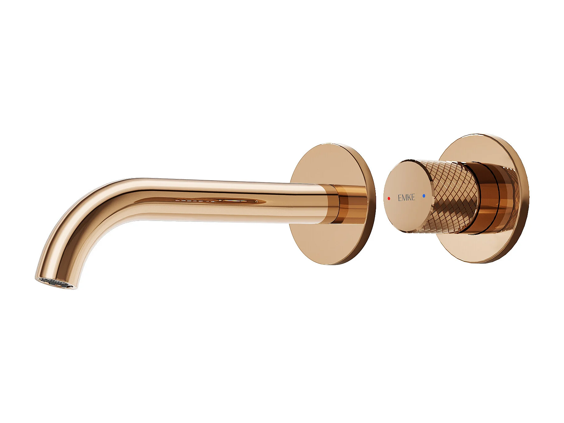 EMKE inbouw wastafelkraan 2-gats wandkraan mengkraan messing keramisch binnenwerk roségoud L.18 cm