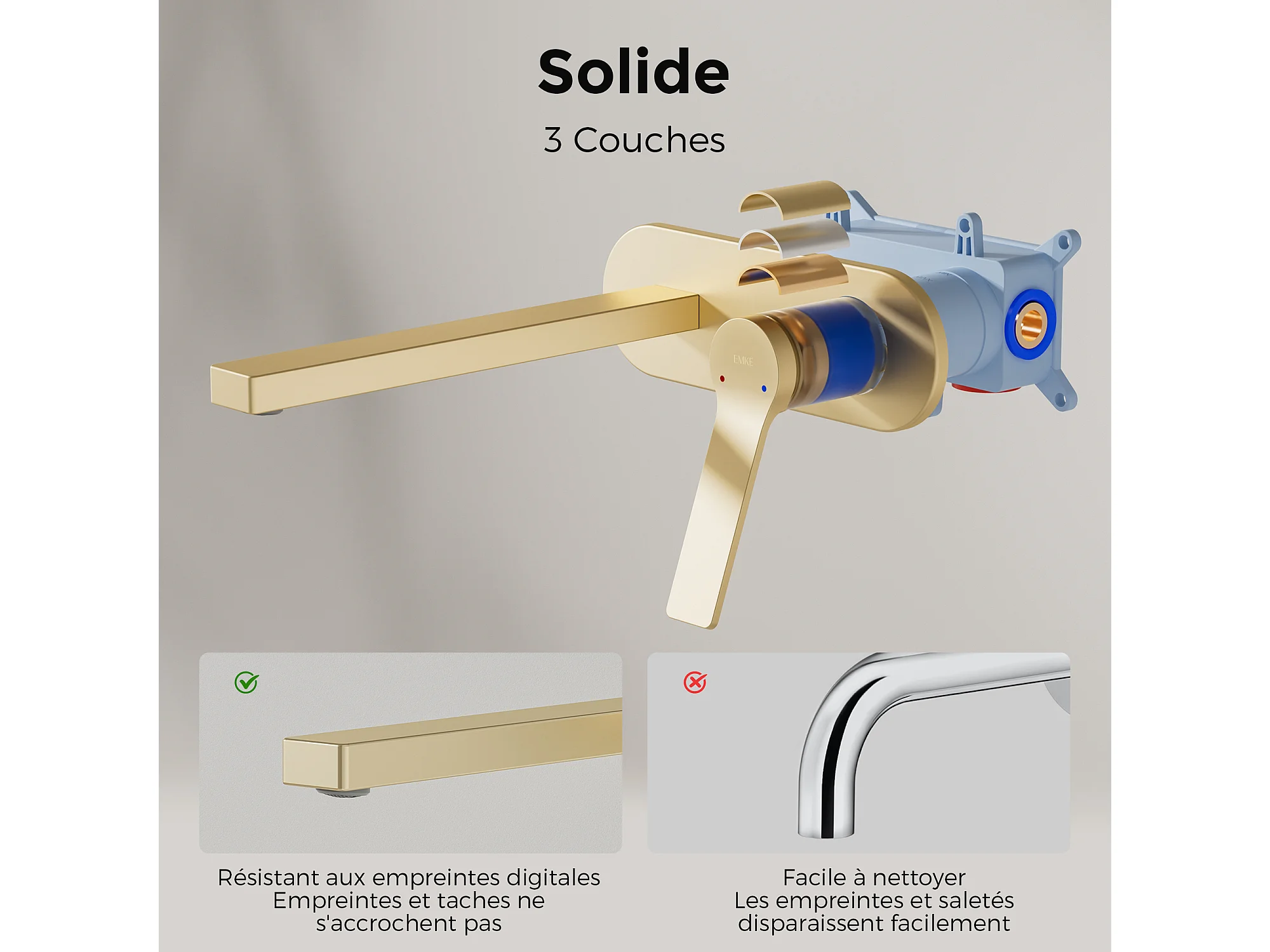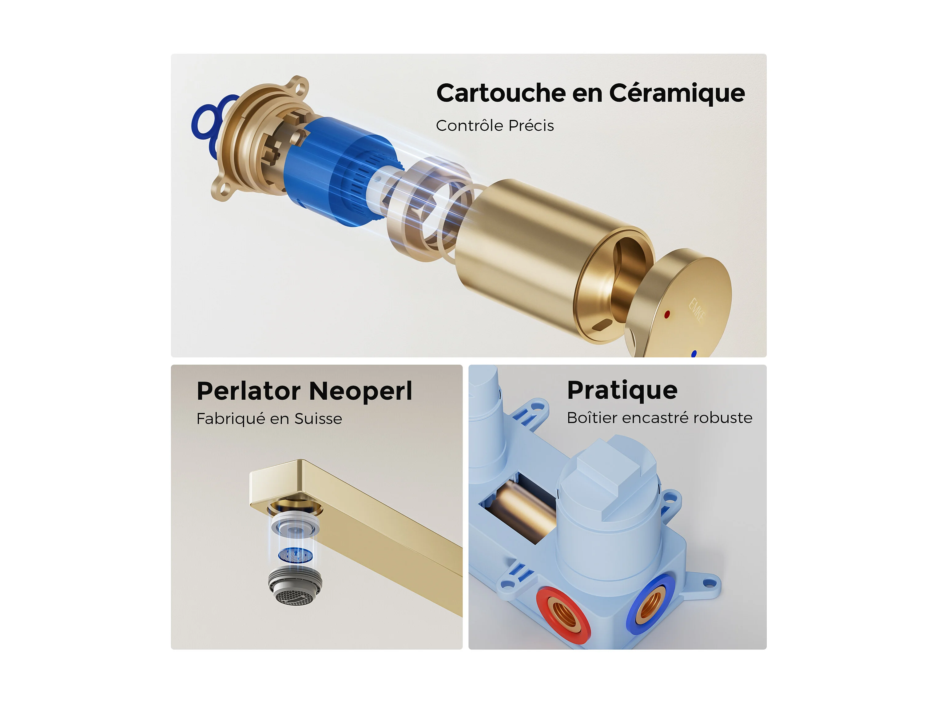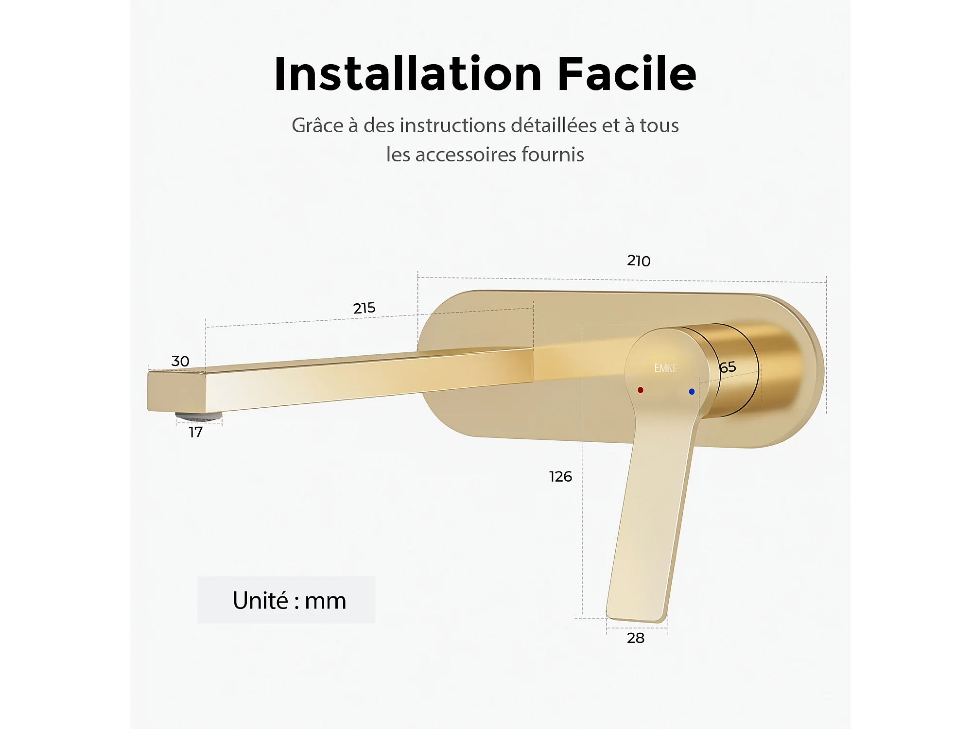 EMKE inbouw wastafelkraan wandkraan mengkraan messing keramisch binnenwerk champagne goud L.21 cm