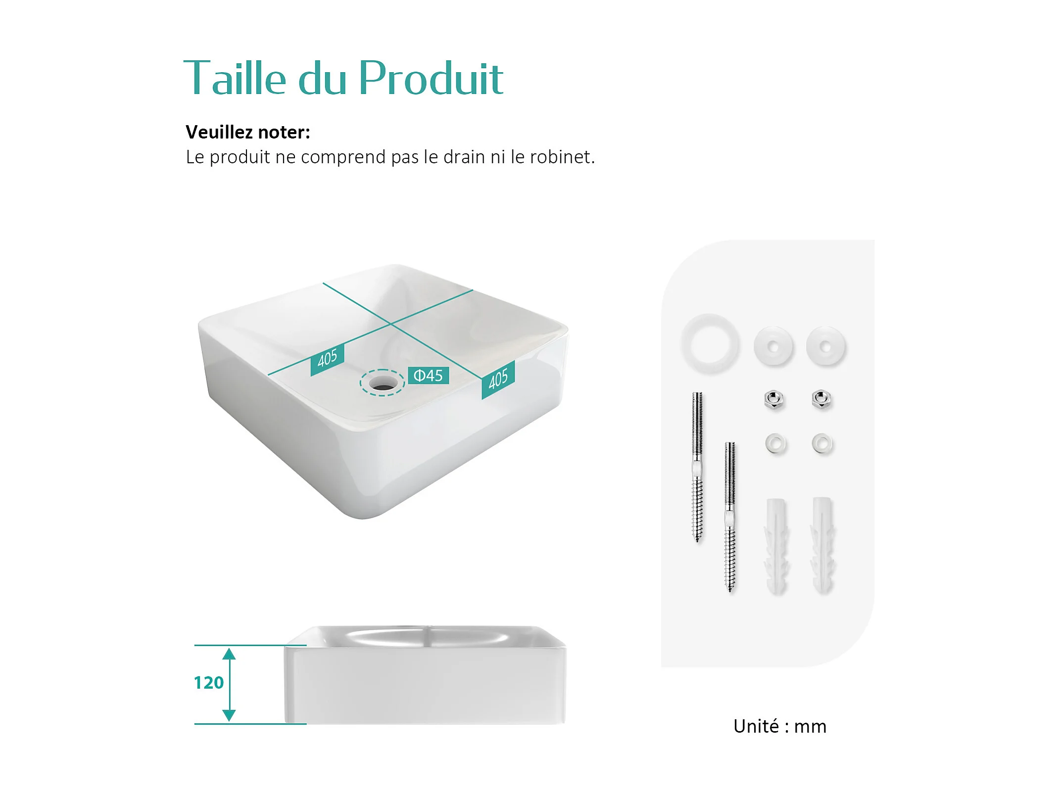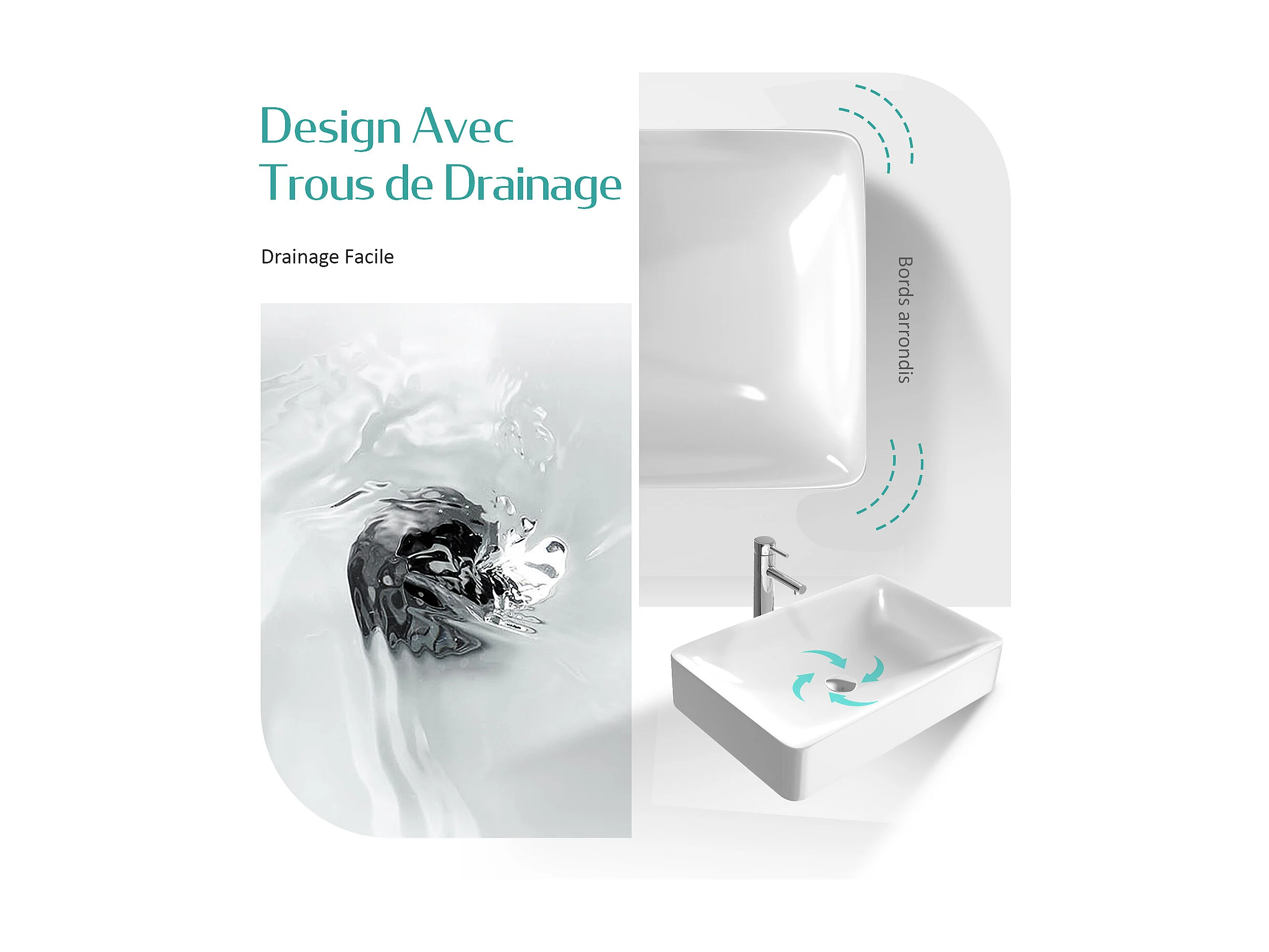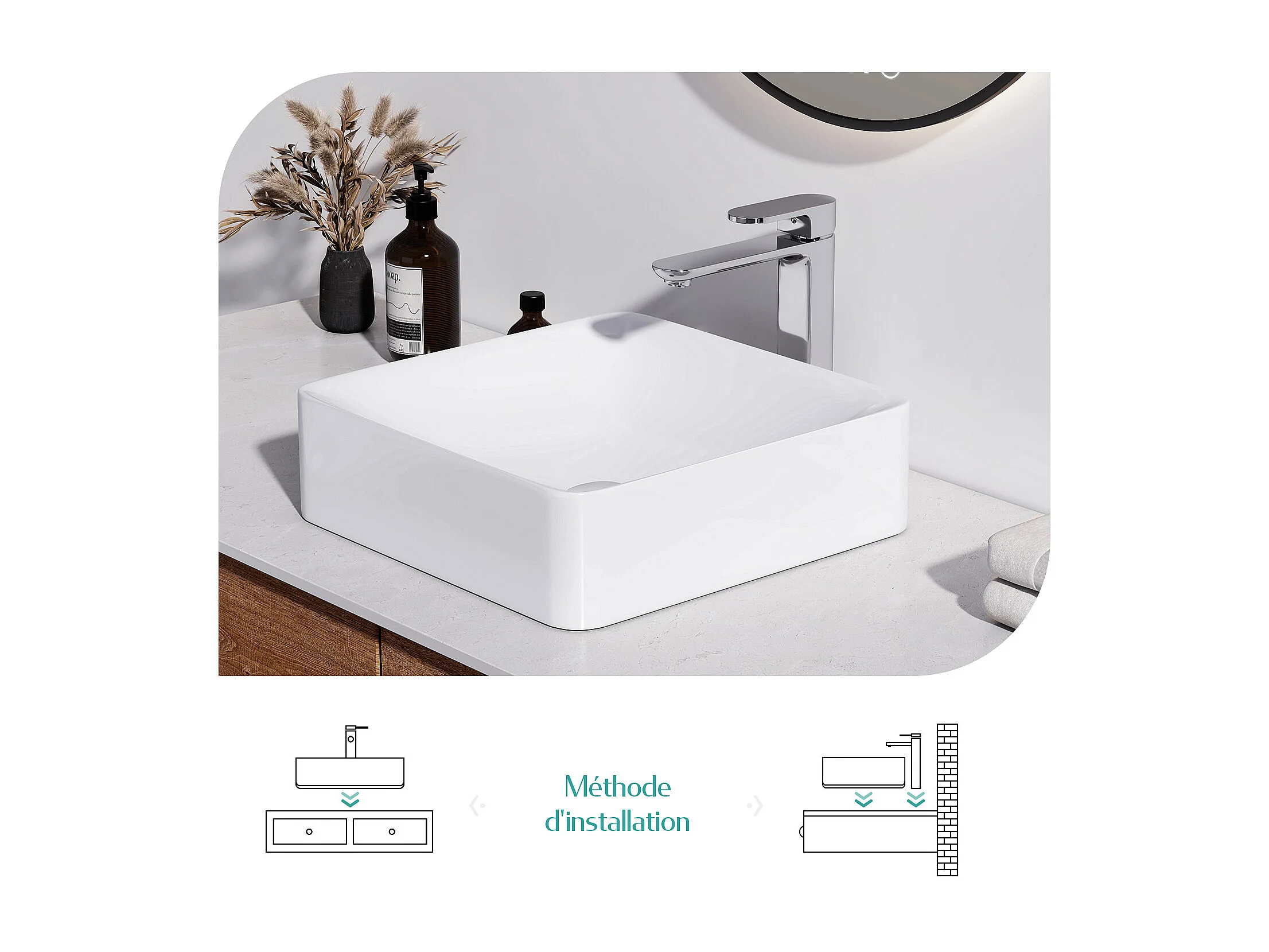 EMKE Opzetwastafel - Keramiek - Glans Wit - 59.5x39.5x12 cm - Badkamer Wasbak