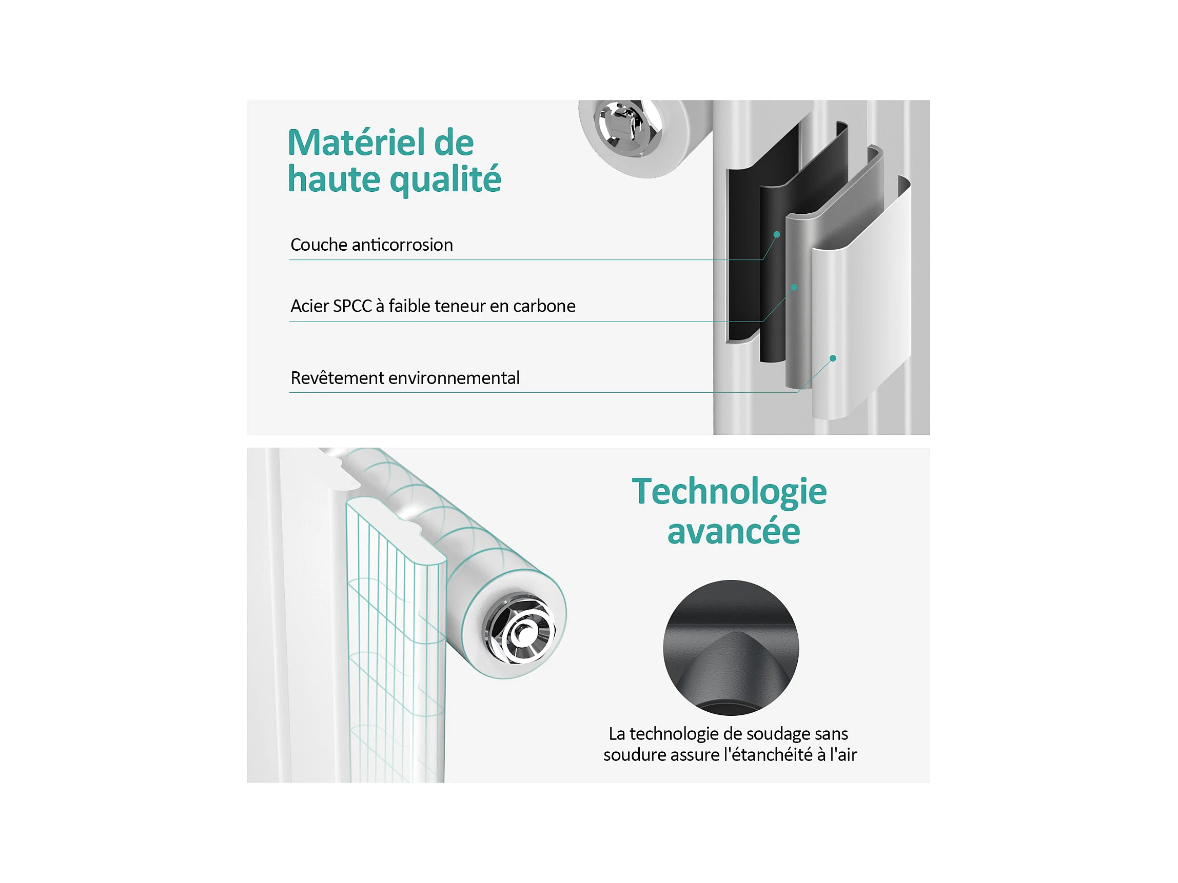 EMKE Radiator - Dubbel-Laags Plat - Glanzend Wit - 180x62 cm - 2227 W - Kolomradiator Vertical - Verwarming voor Alle Ruimtes
