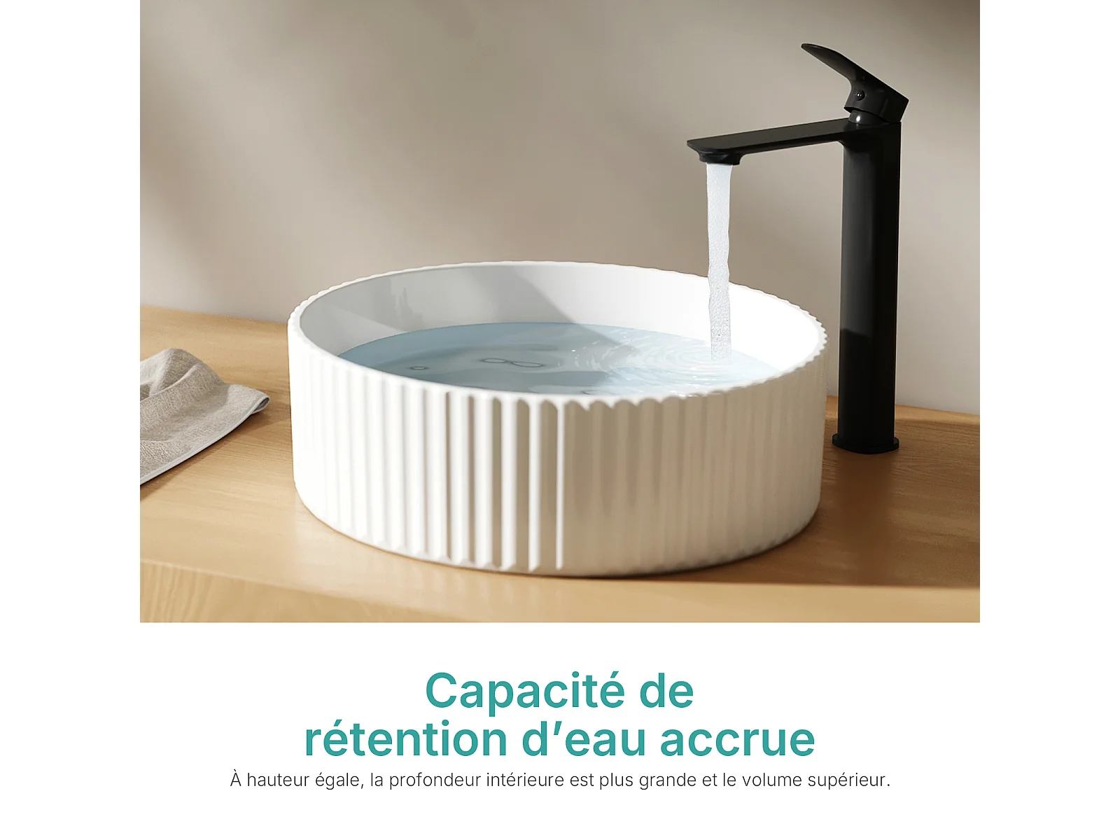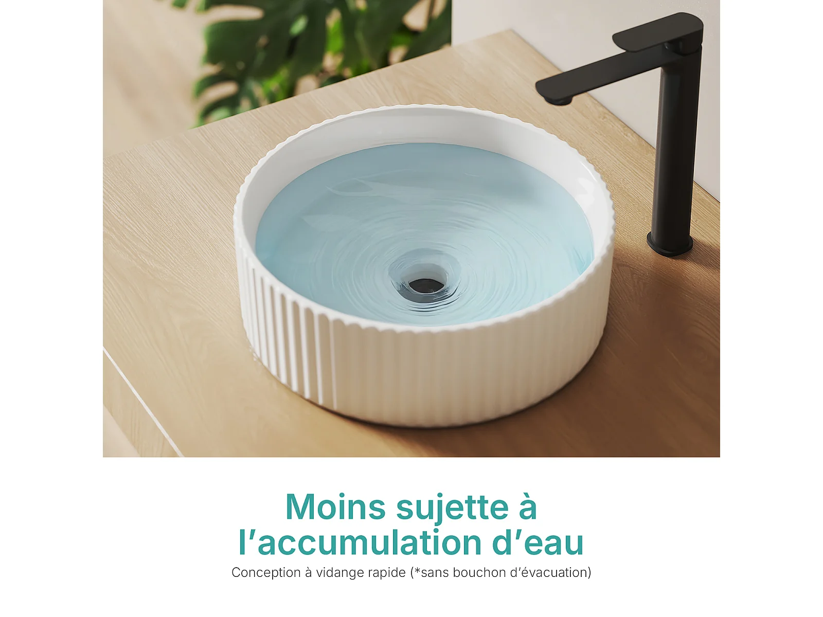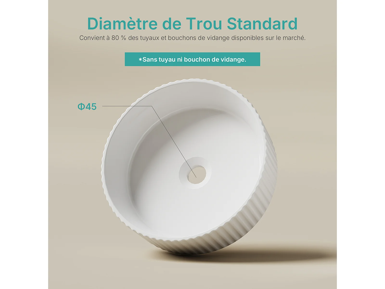 EMKE ronde keramische wastafel 36 x 36 x 11,5 cm, glanzend wit, wastafel voor op het aanrecht zonder kraangat