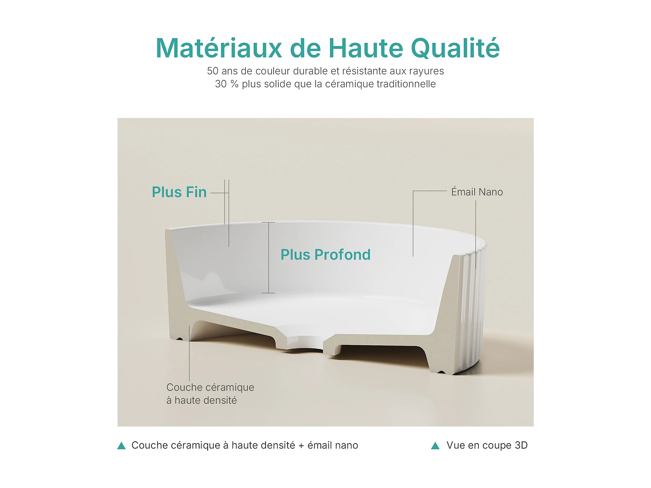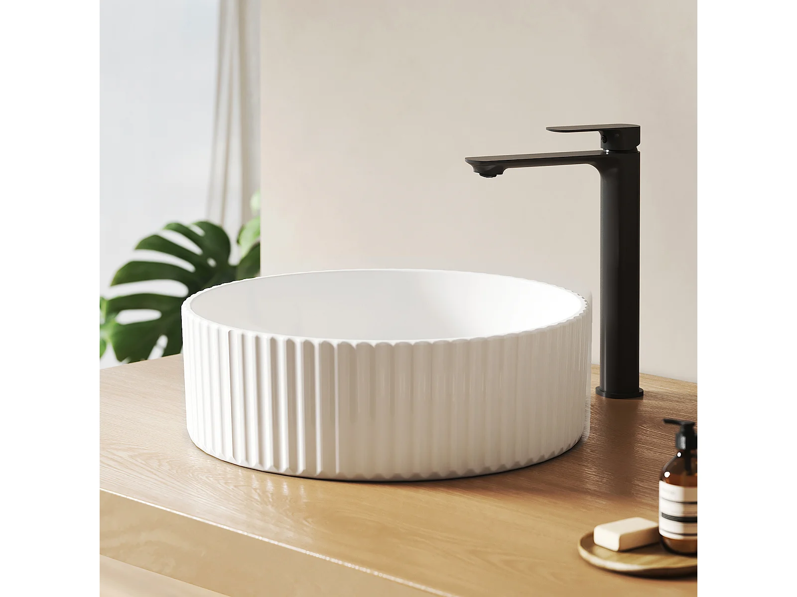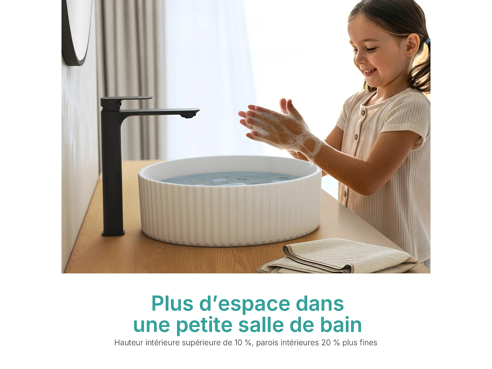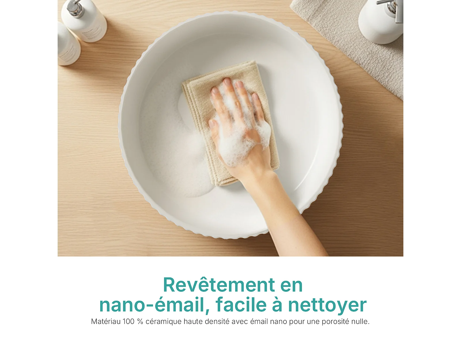 EMKE ronde keramische wastafel 36 x 36 x 11,5 cm, glanzend wit, wastafel voor op het aanrecht zonder kraangat
