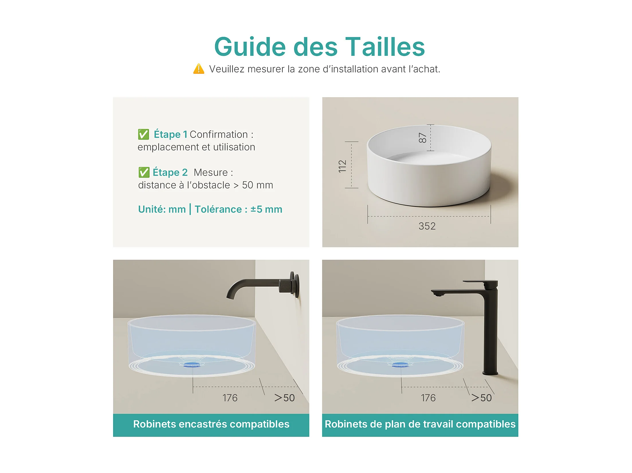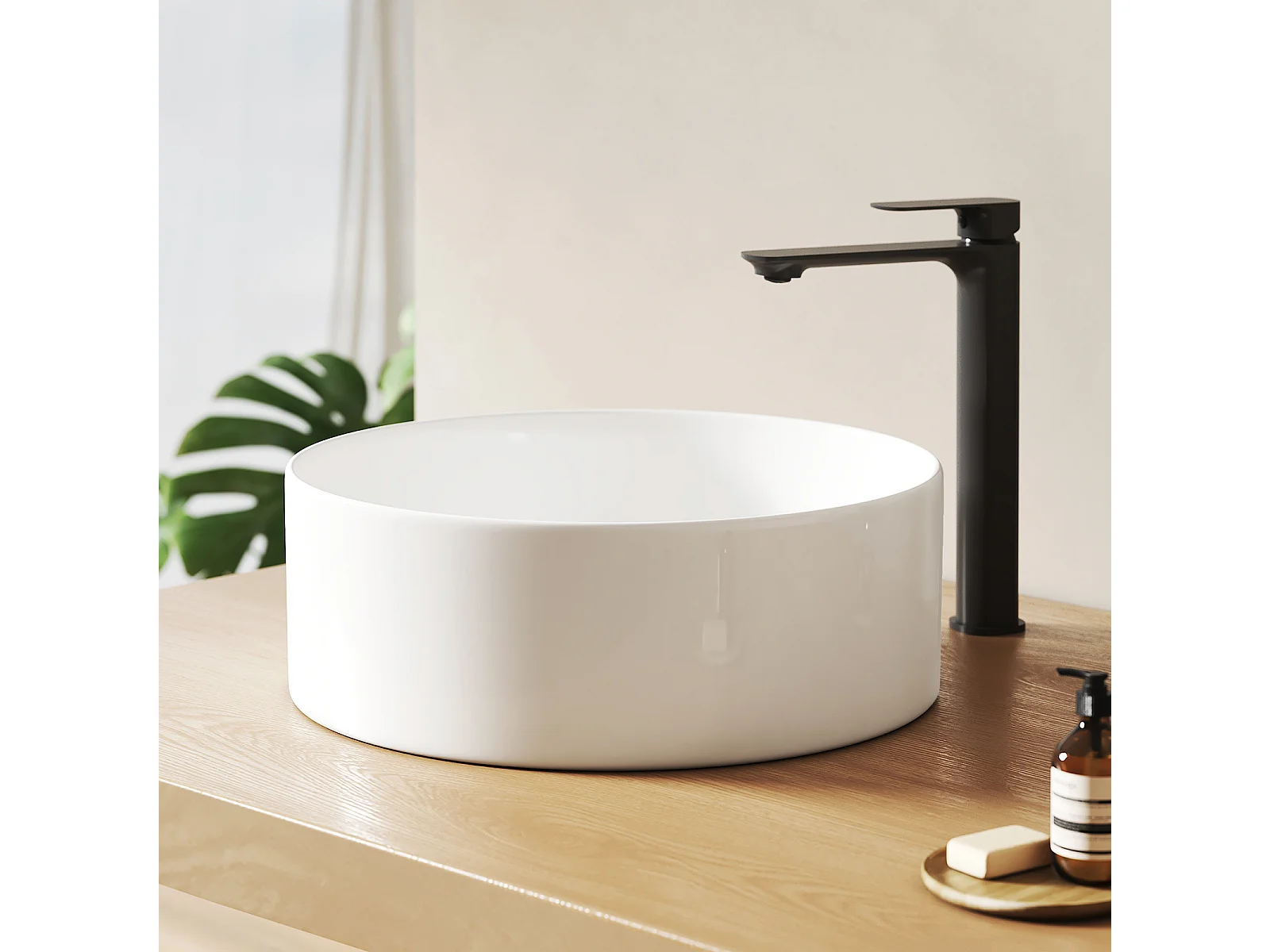 EMKE Ronde keramische wastafel voor op het aanrecht 352x352x112 mm, badkamerwastafel, wit