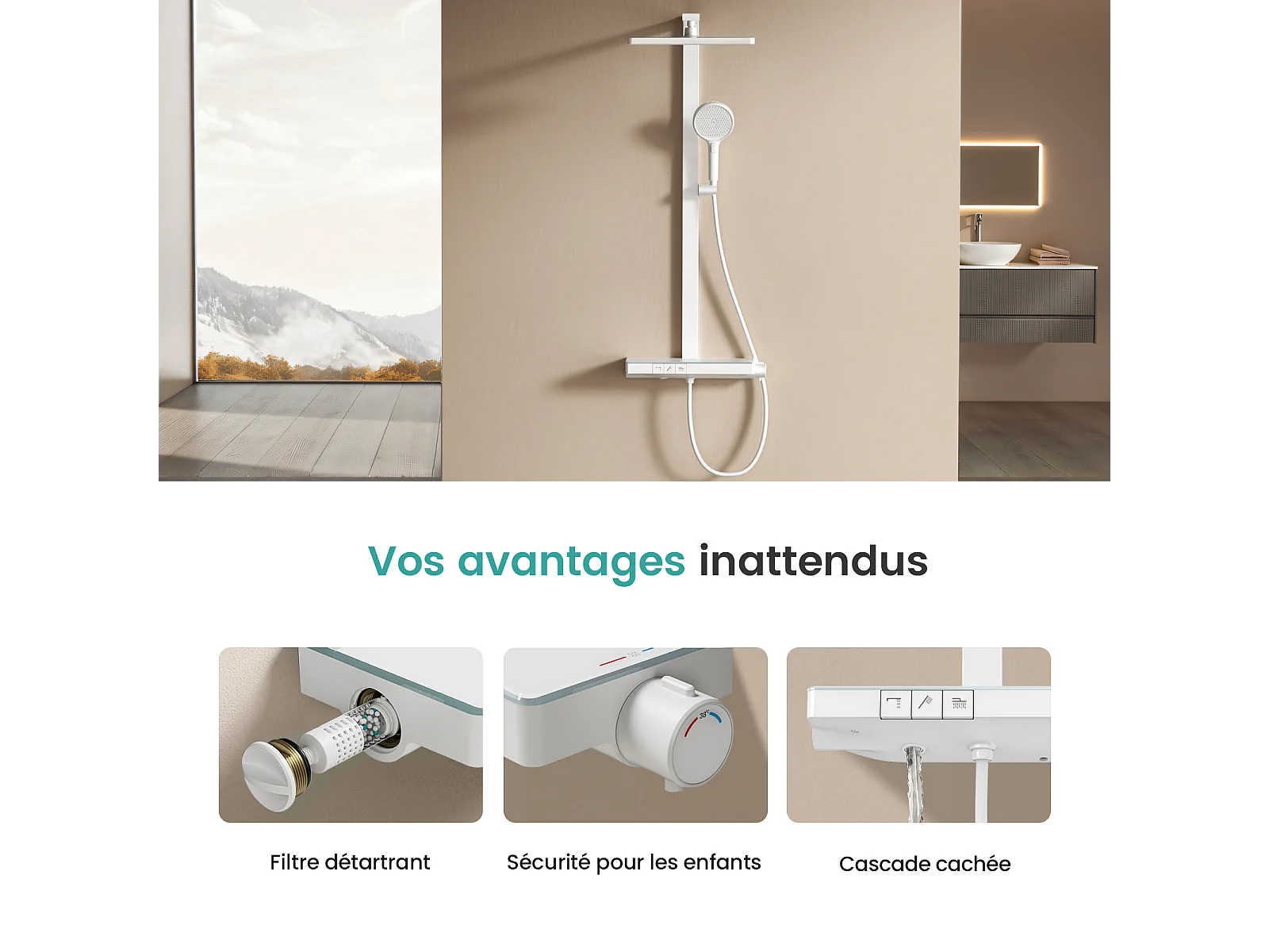 EMKE Thermostatische Doucheset Wit Regendouche 36x24cm & Handdouche 4 Standen met Planchet
