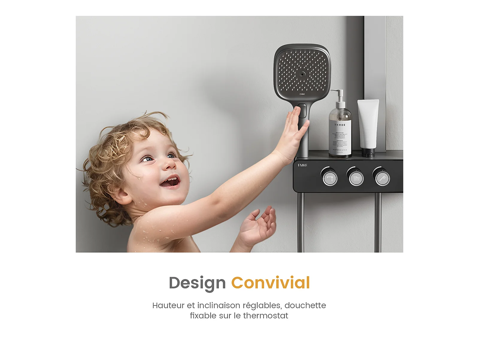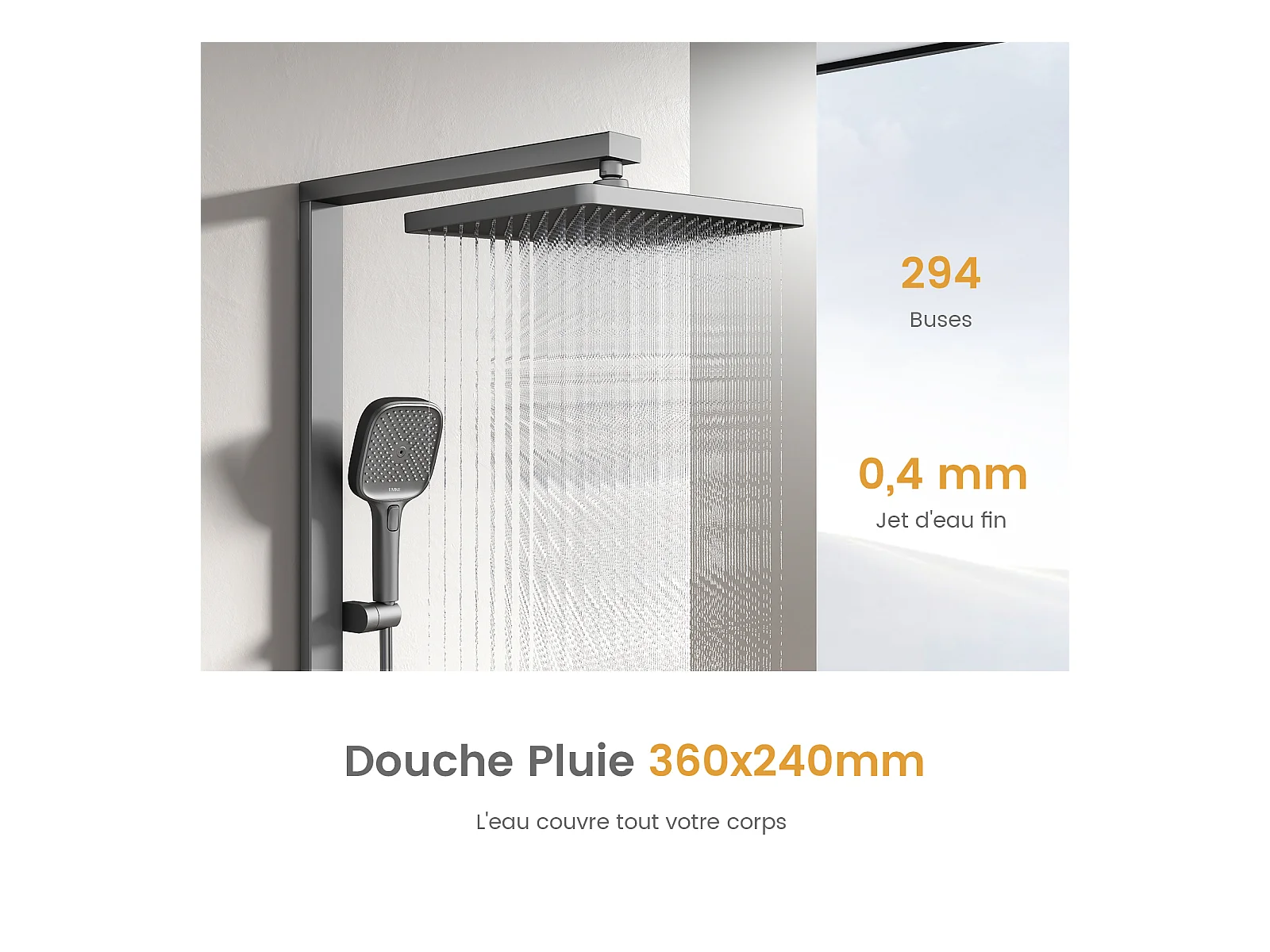EMKE Douchkolom met Thermostaat 38℃ Regendouche 40 cm Glasplank met 3+1 Handdouche voor Ouders-Kind + Douchhouder - Mat Anthraciet