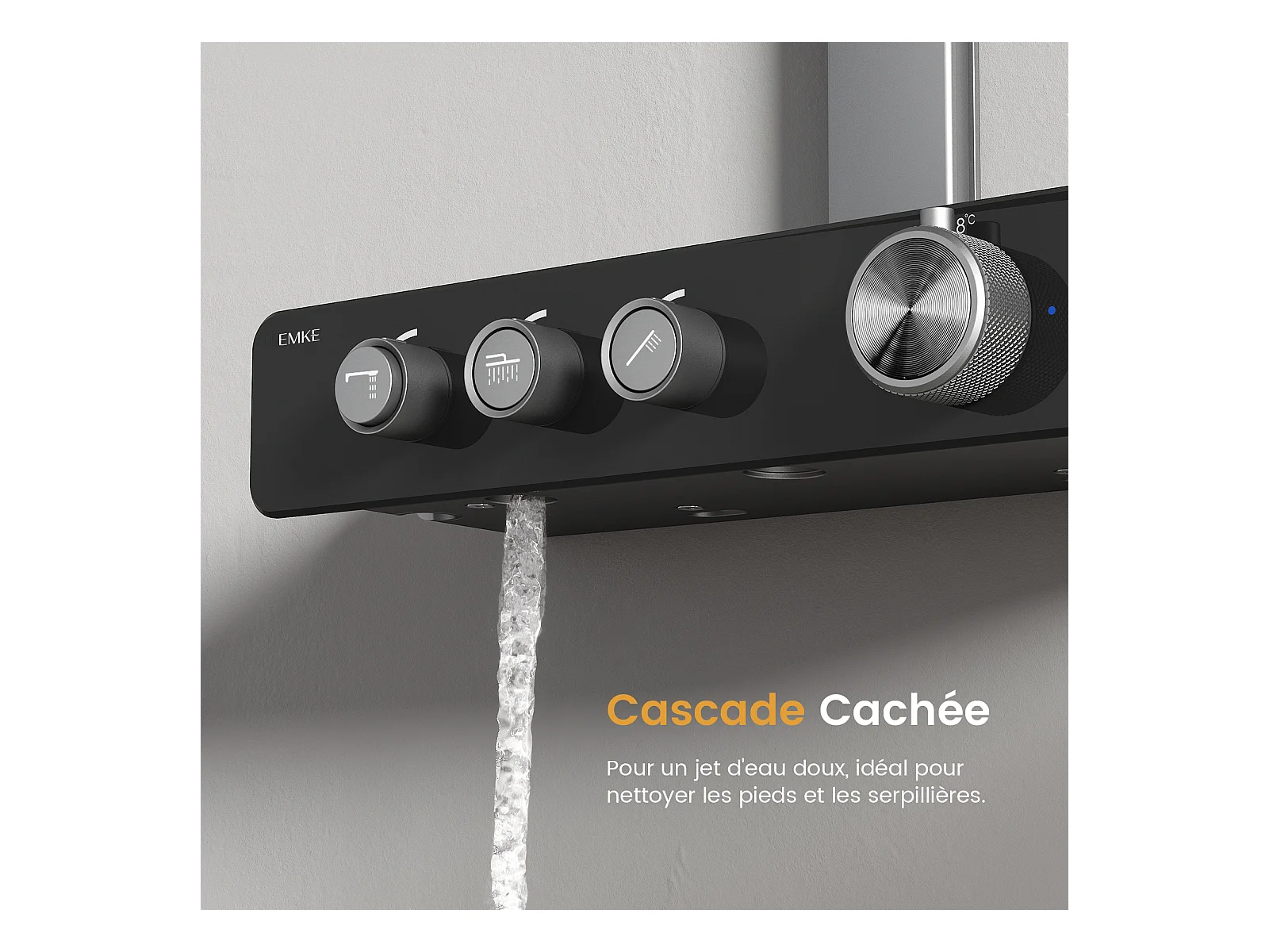 EMKE Thermostatische douchestang – Mat antraciet, verstelbare waterstroom, gescheiden minimalistisch ontwerp, handdouche met 3 functies, doucheset