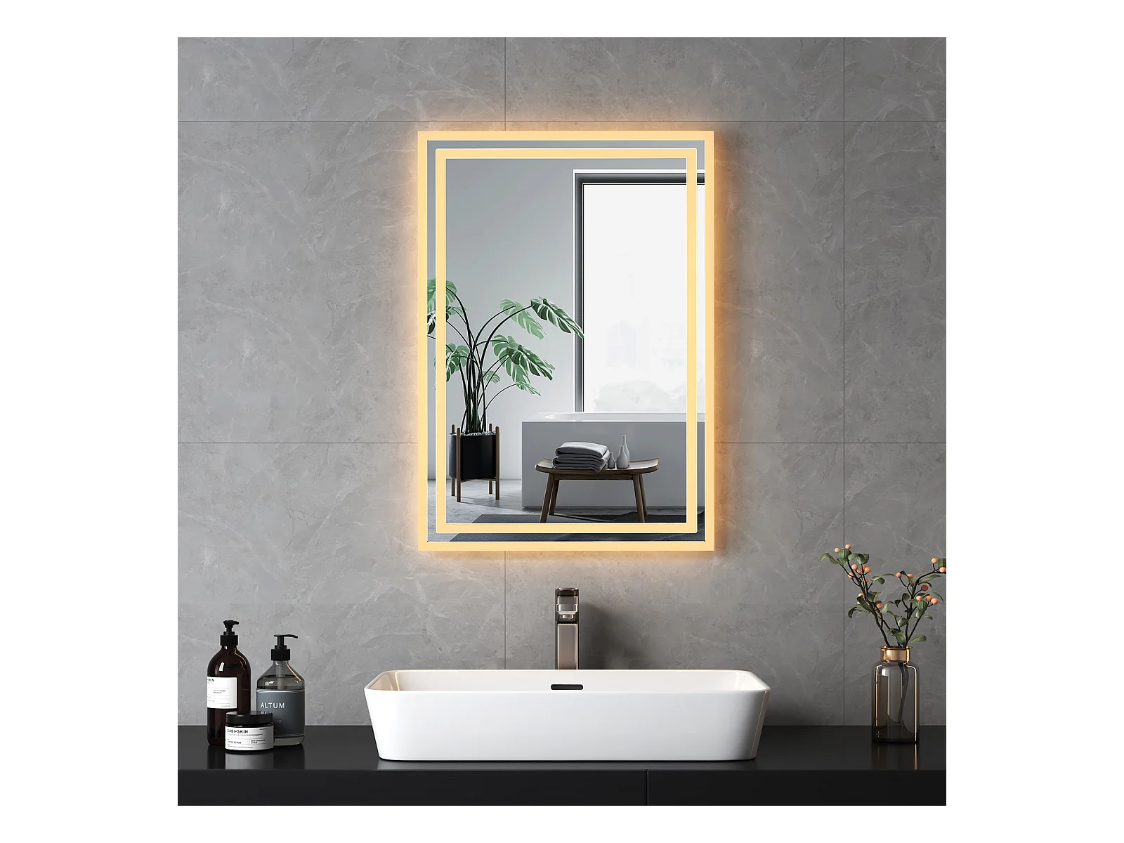 EMKE Badkamerspiegel LM03 - Geschikt voor Wandschakelaar - 3000K Warm Wit - 50 x 70 CM - Horizontaal/Verticaal Hangend