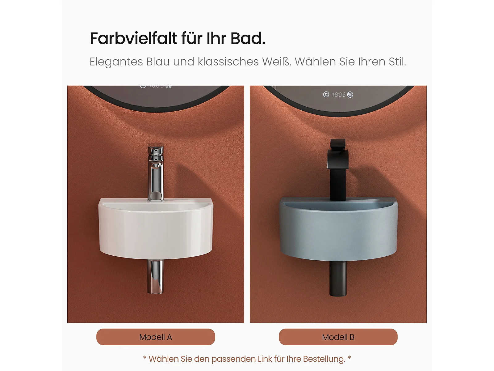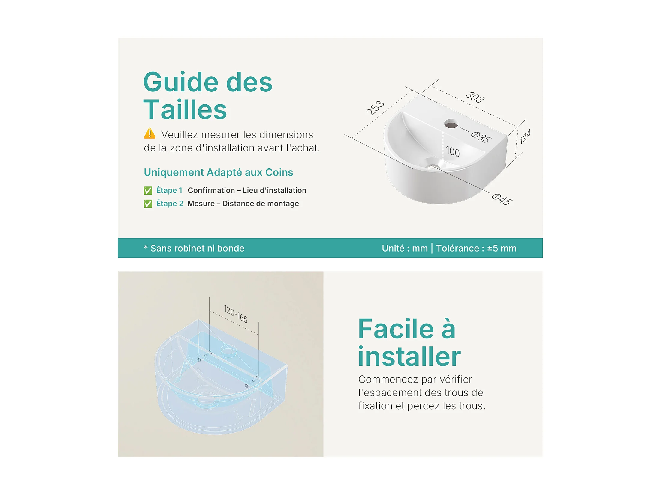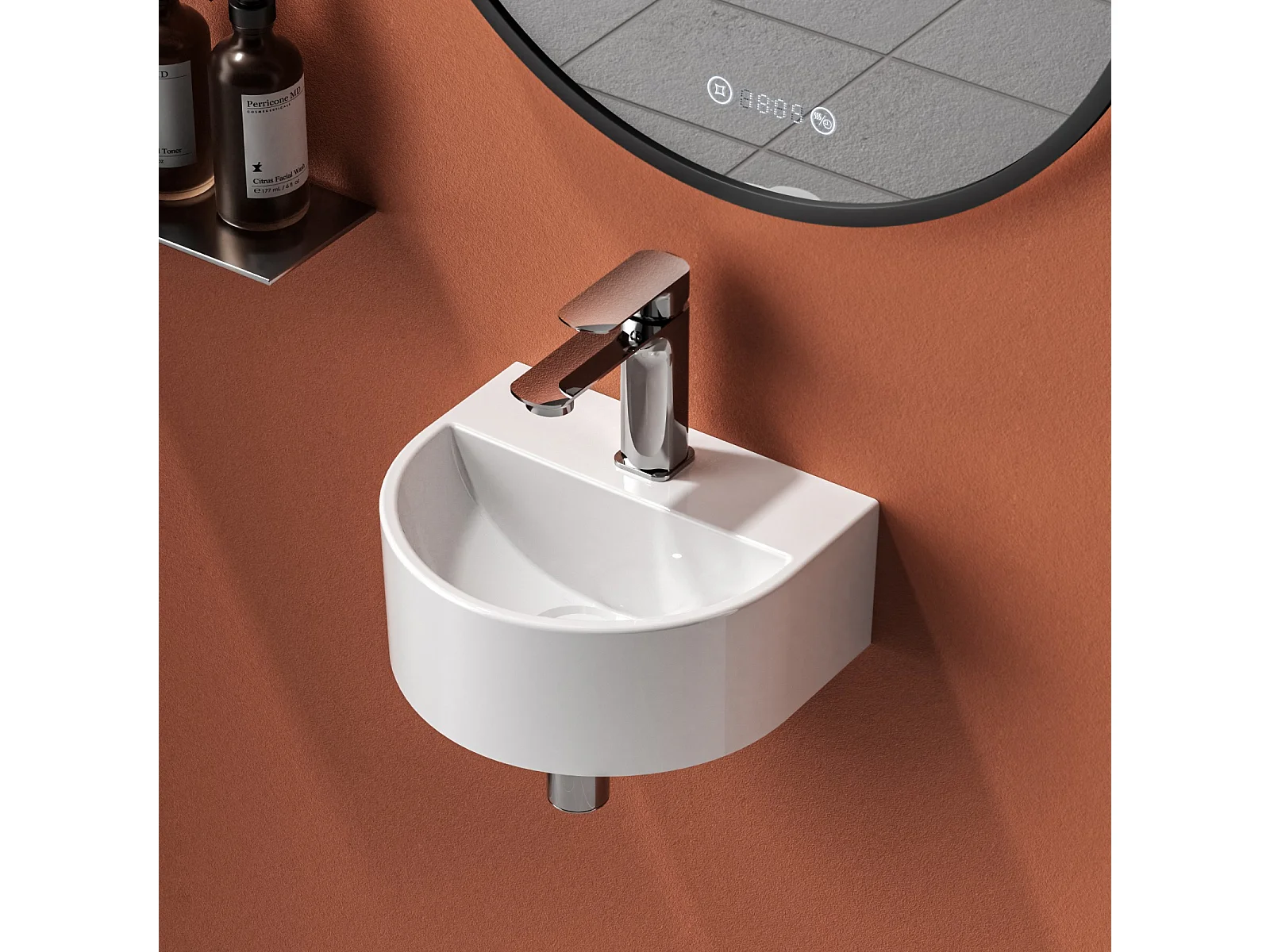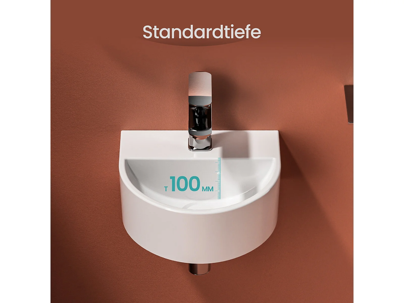 EMKE Wandwastafel 303 x 255 x 120 mm, Mini keramische wastafel, U-vormig, Wandmontage, Glanzend wit