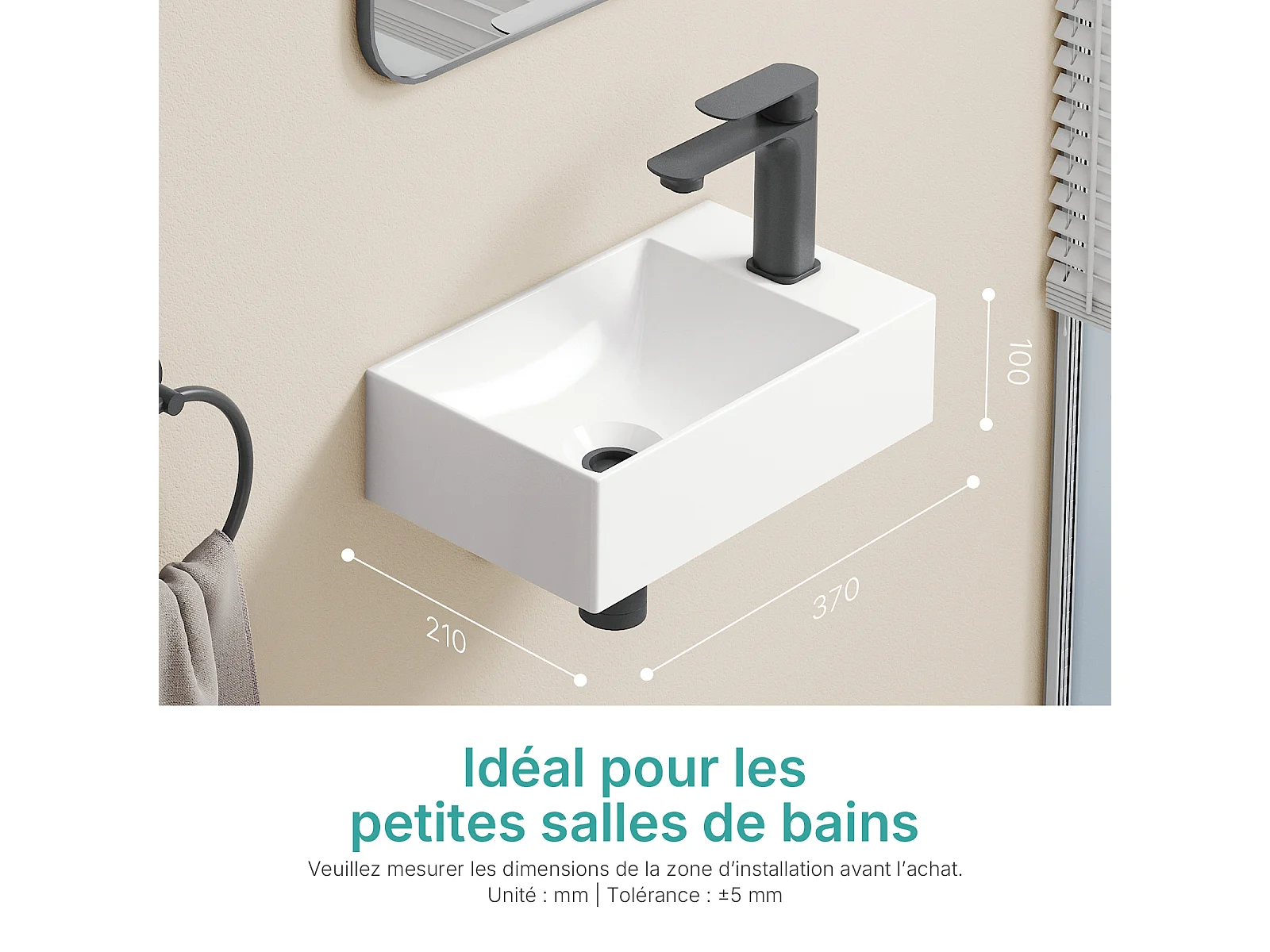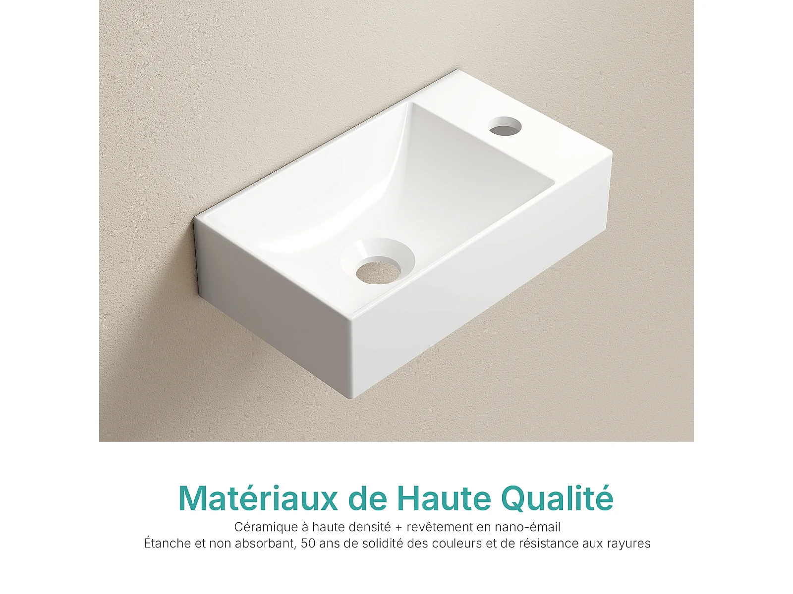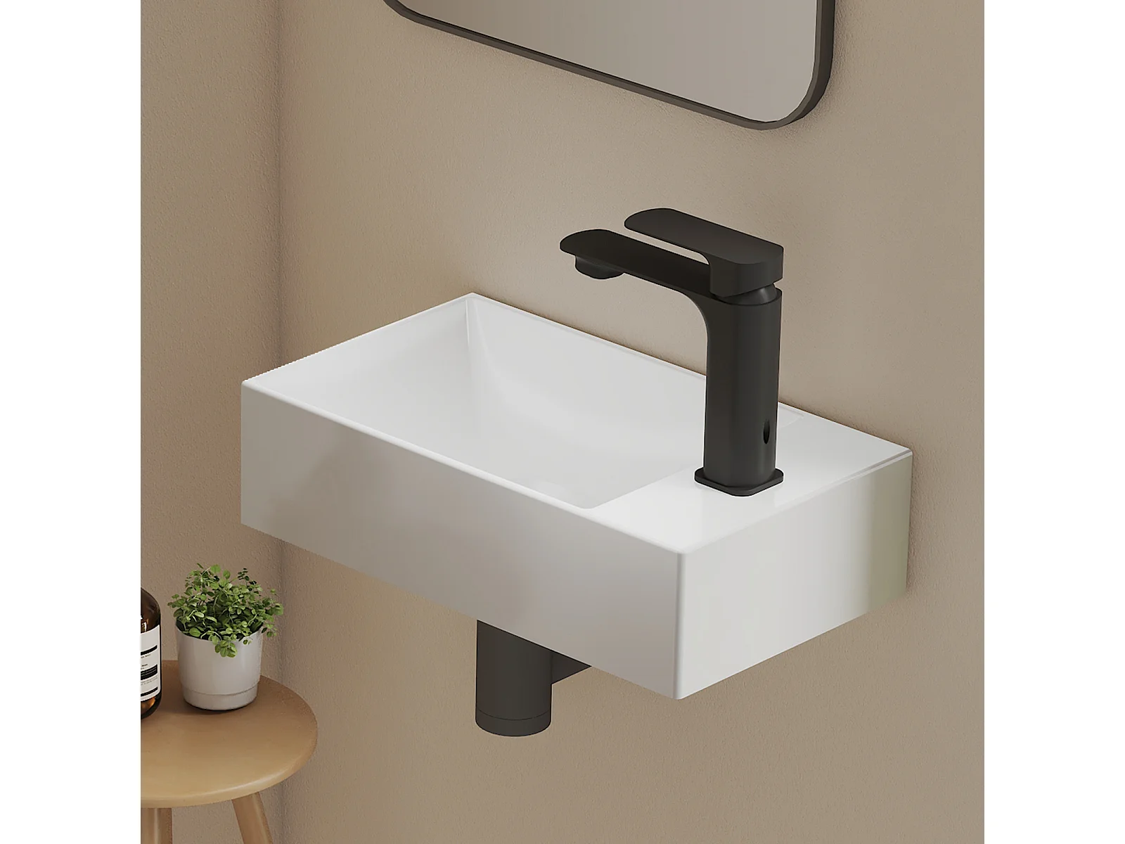 EMKE Wandwastafel 38x22x10 cm, Wit Glanzend wit, Vierkante wandwastafel met kraan Gat