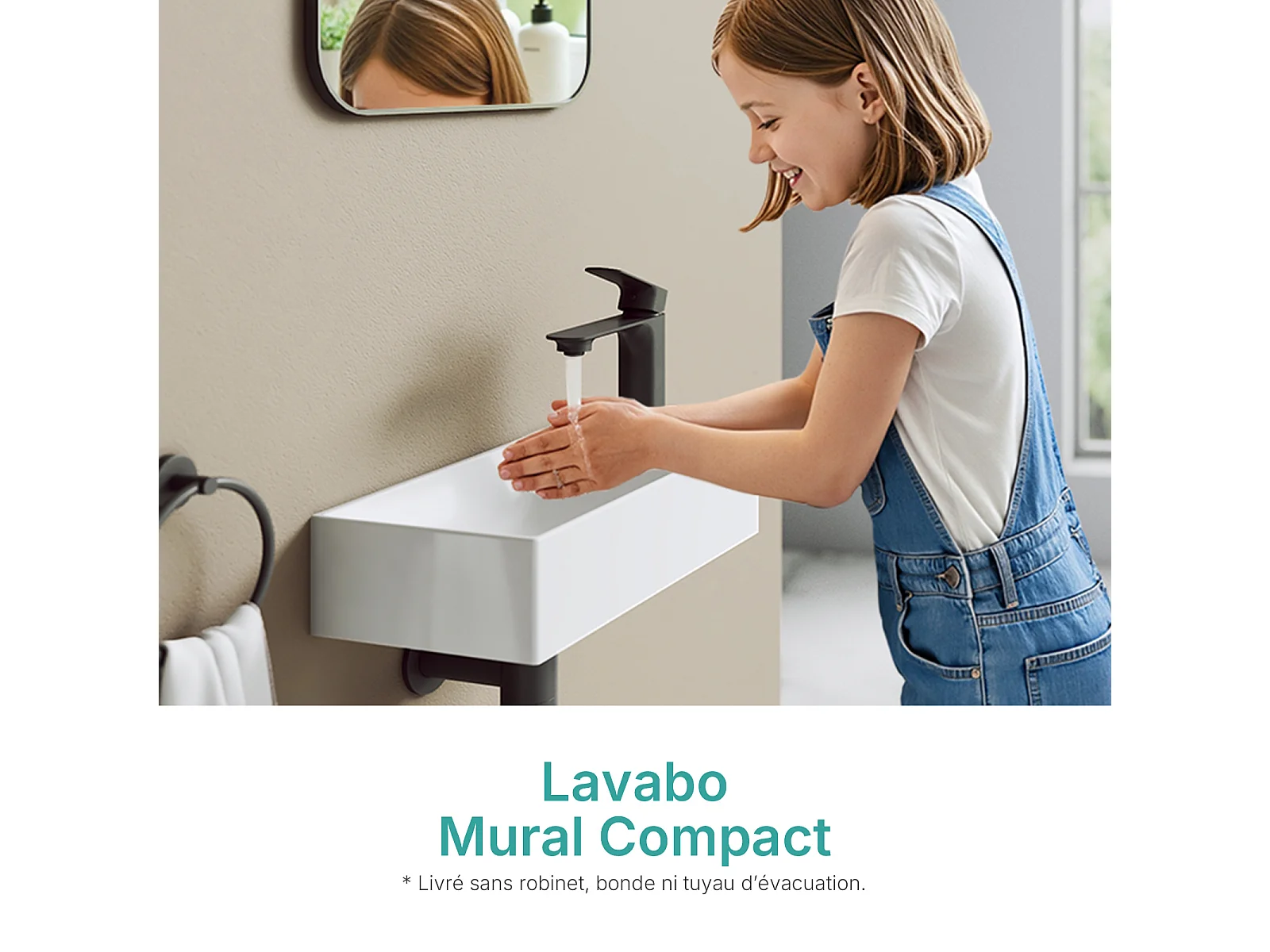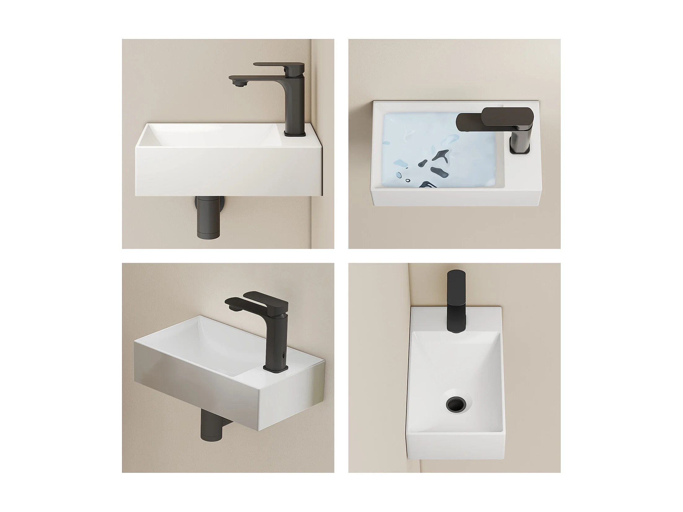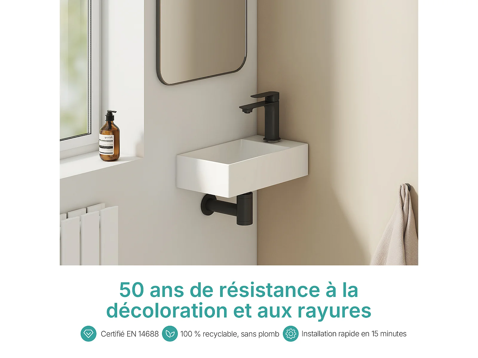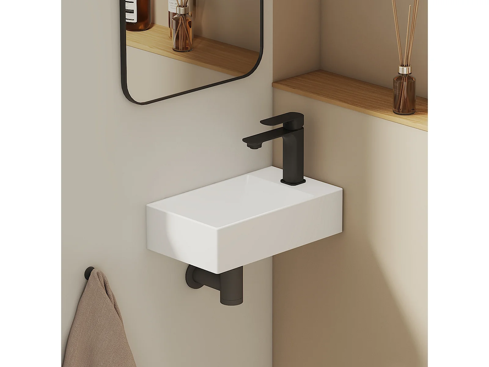 EMKE Wandwastafel 38x22x10 cm, Wit Glanzend wit, Vierkante wandwastafel met kraan Gat