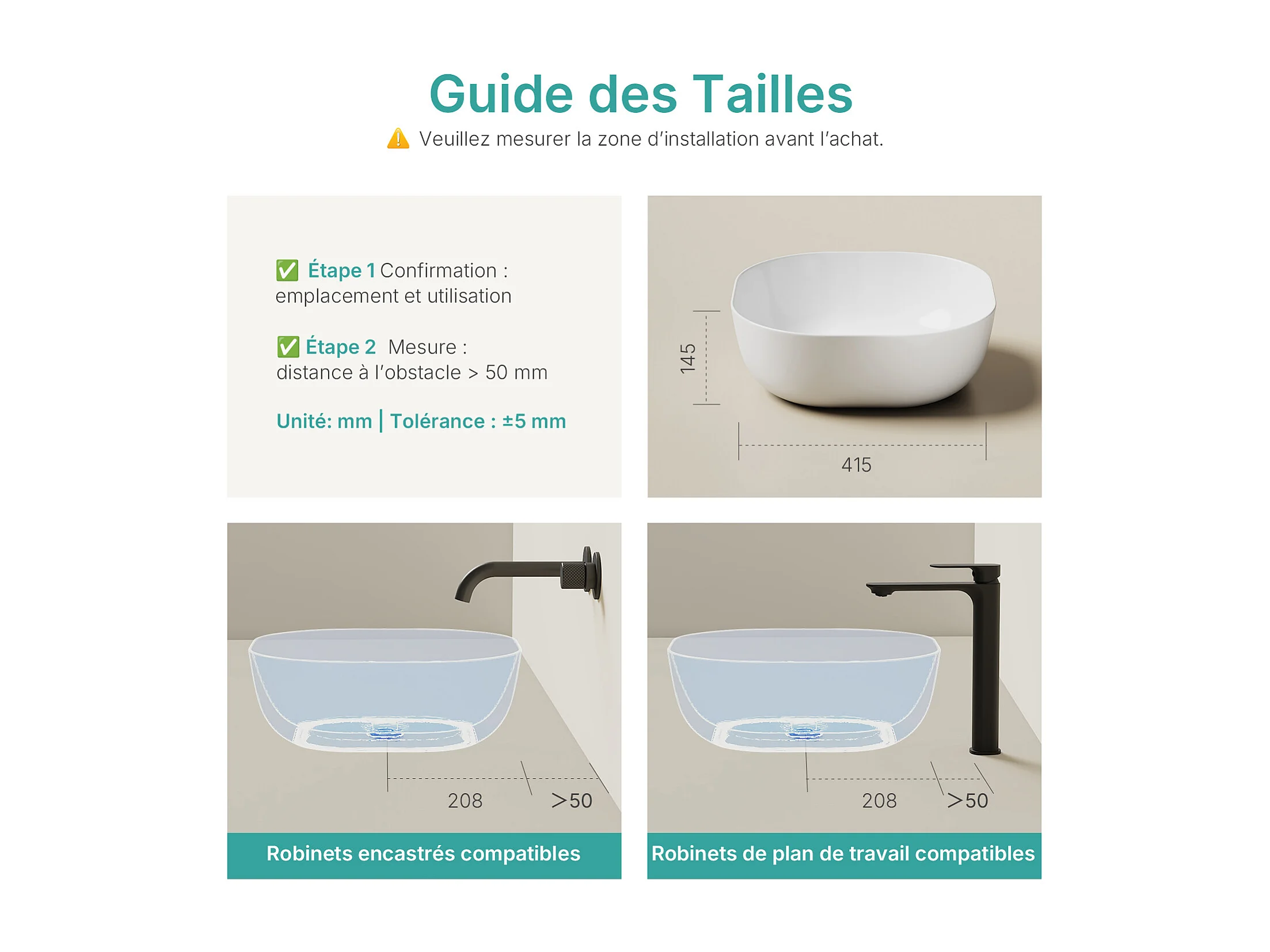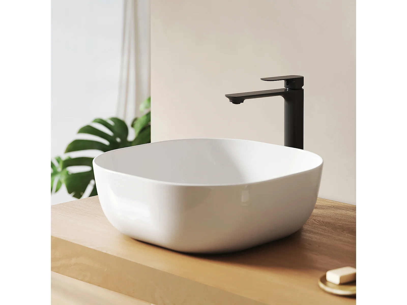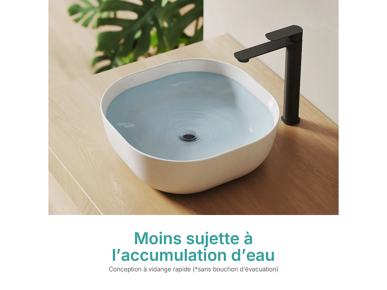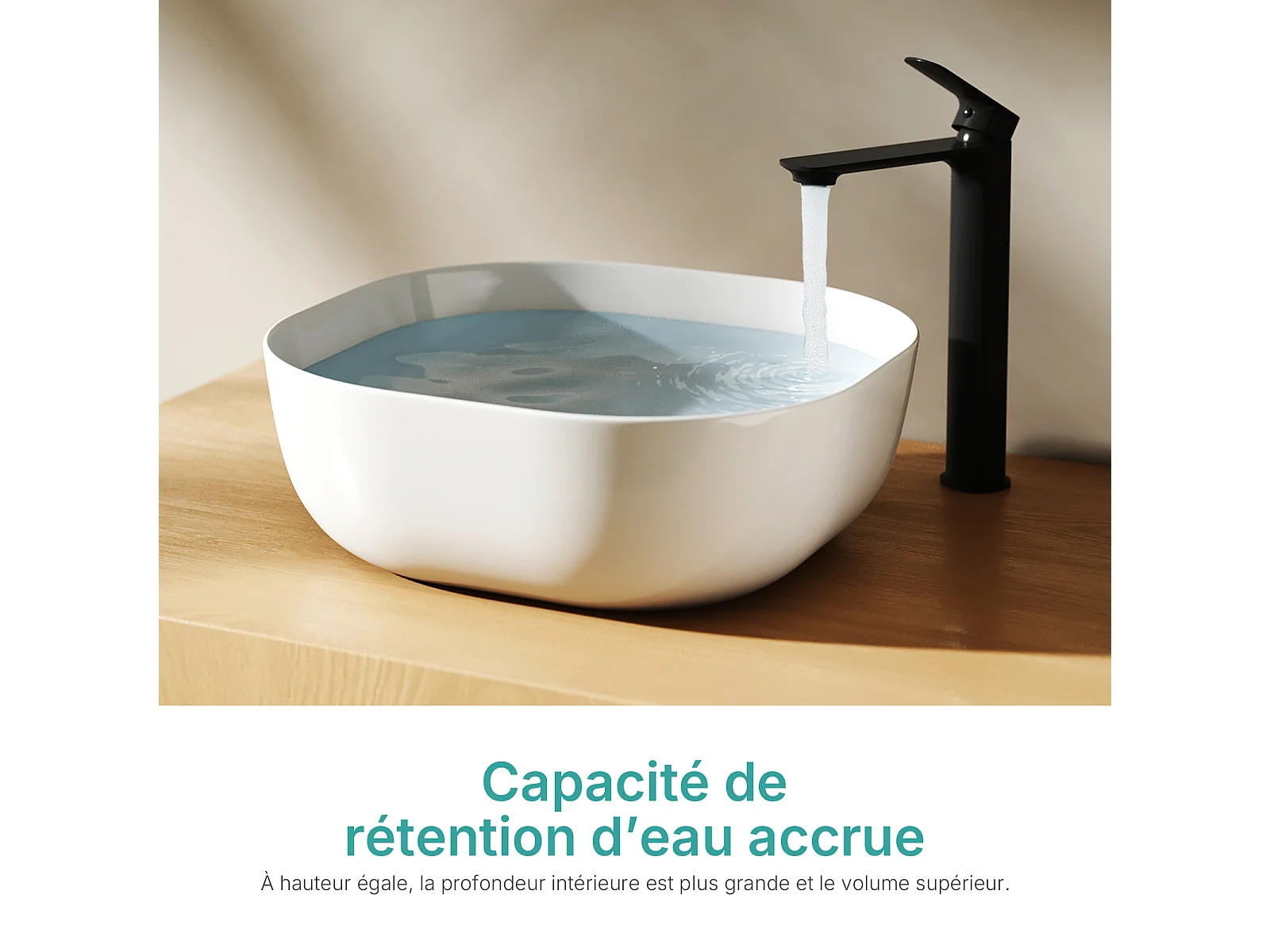 EMKE witte keramische wastafel 415 x 415 x 145 mm, vierkante wastafel voor op het aanrecht zonder kraangat