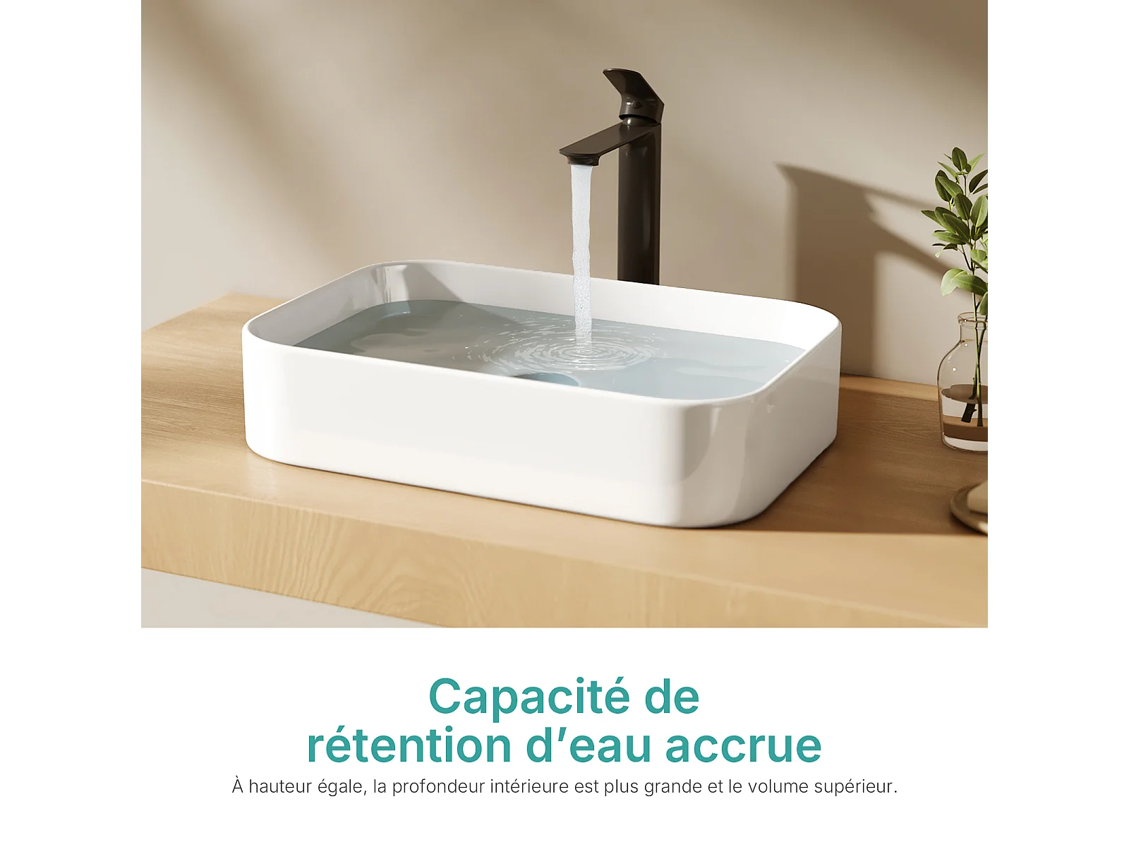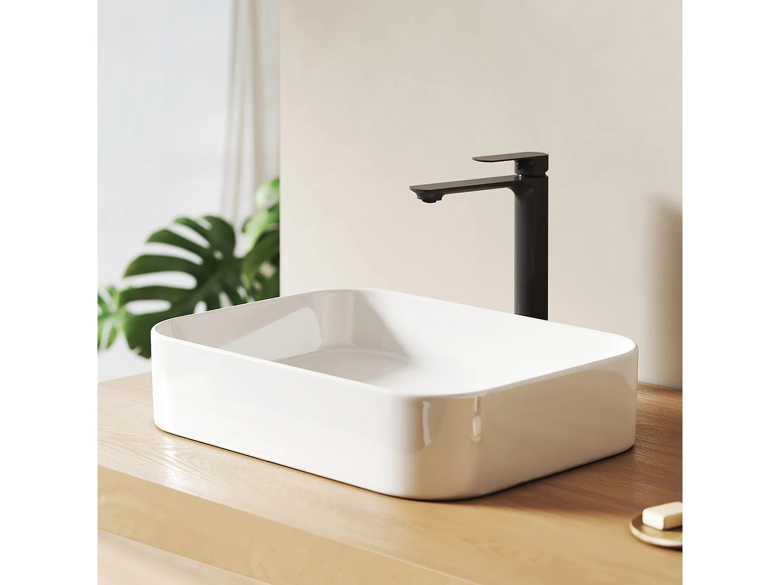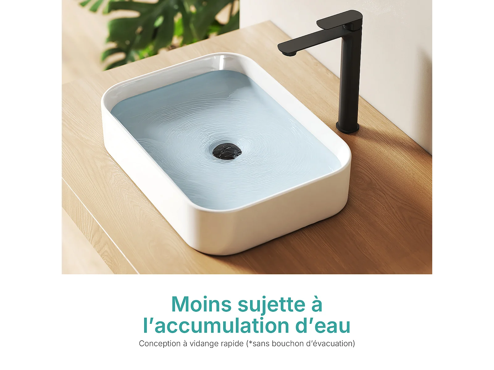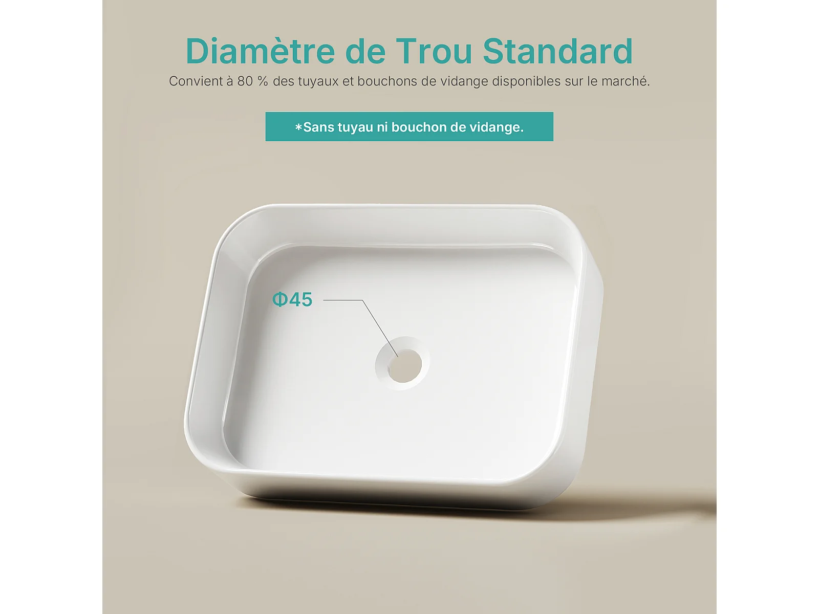 EMKE witte keramische wastafel 505 x 370 x 110 mm, vierkante wastafel voor op het aanrecht zonder kraan Gat