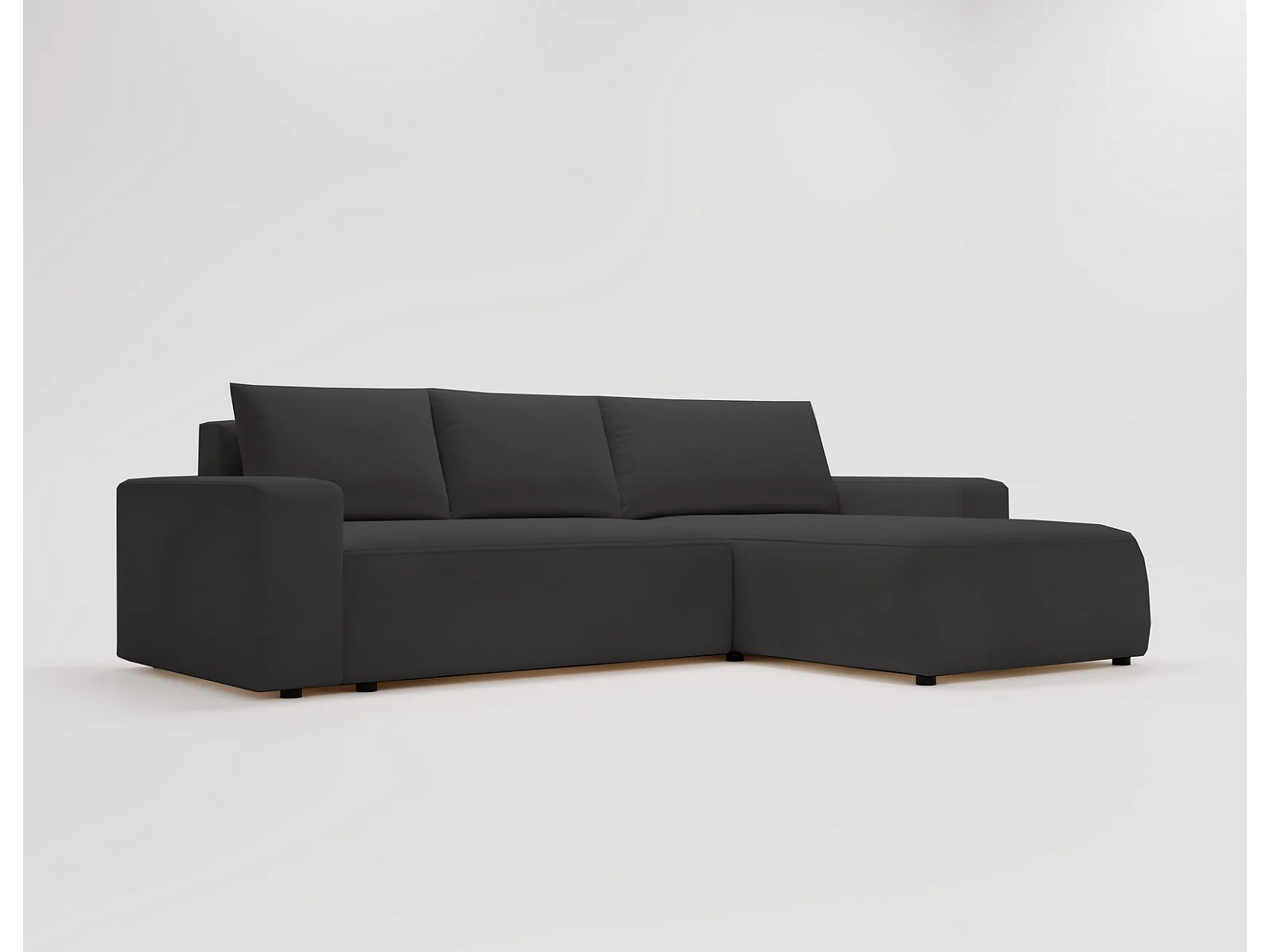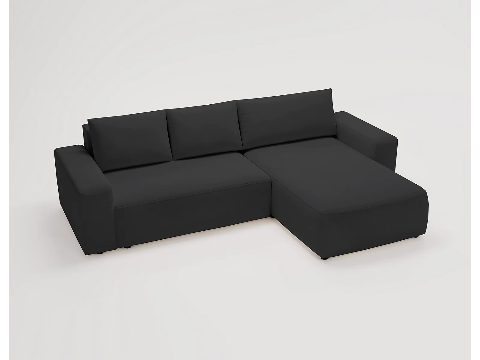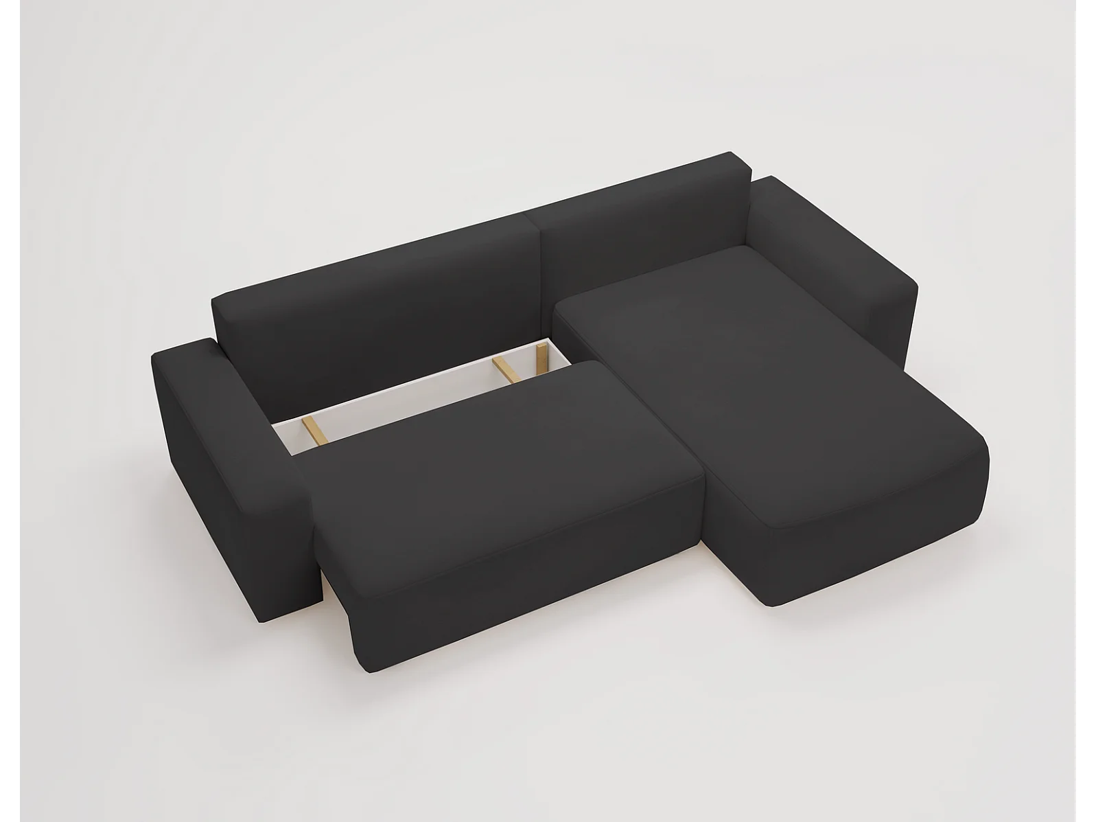 Emporius Aldo L rechts Hoekbank met slaapfunctie en bedlade, Sofa 250x165 cm - woonkamerbank zwart (Komodo 23)