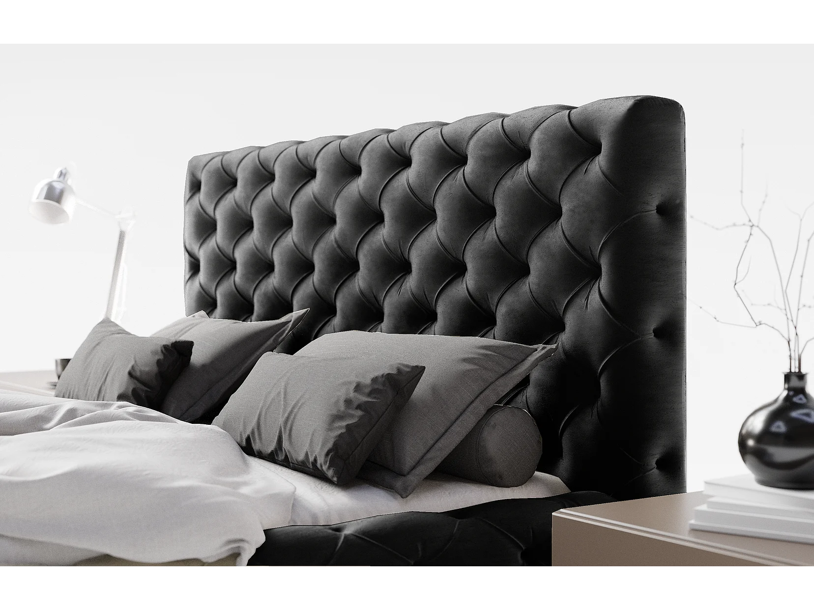 Emporius bed 140x200 Paris - bed met opbergruimte, gestoffeerd bed met lattenbodem - fluwelen Zwart (Magic Velvet 2219)