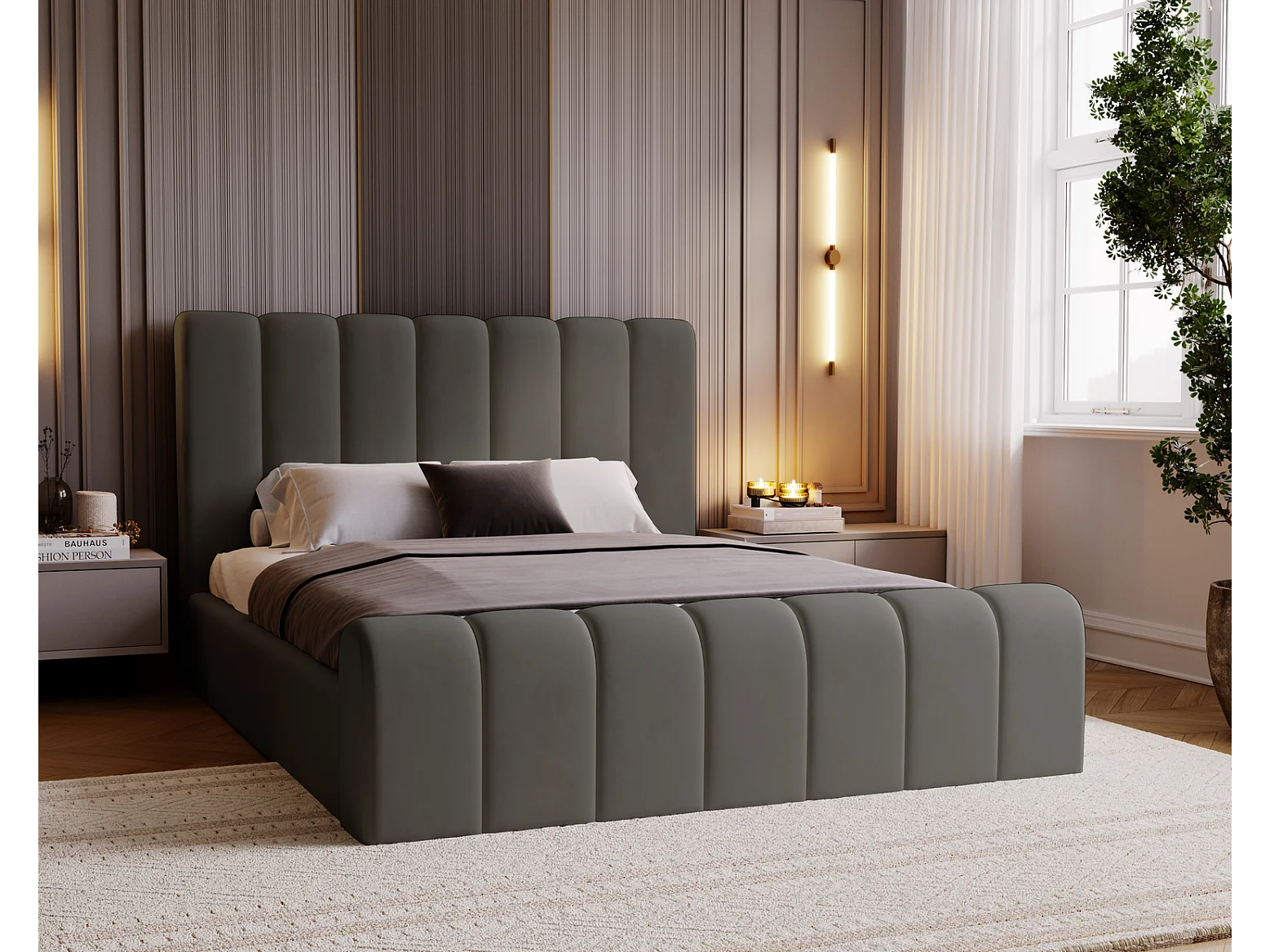 Emporius bed 140x200 Valetta - tweepersoonsbed met opbergruimte, luxe bed met lattenbodem en bedlade - Gestoffeerd bed 140x200 - Donkergrijs (Amor Velvet 4321)