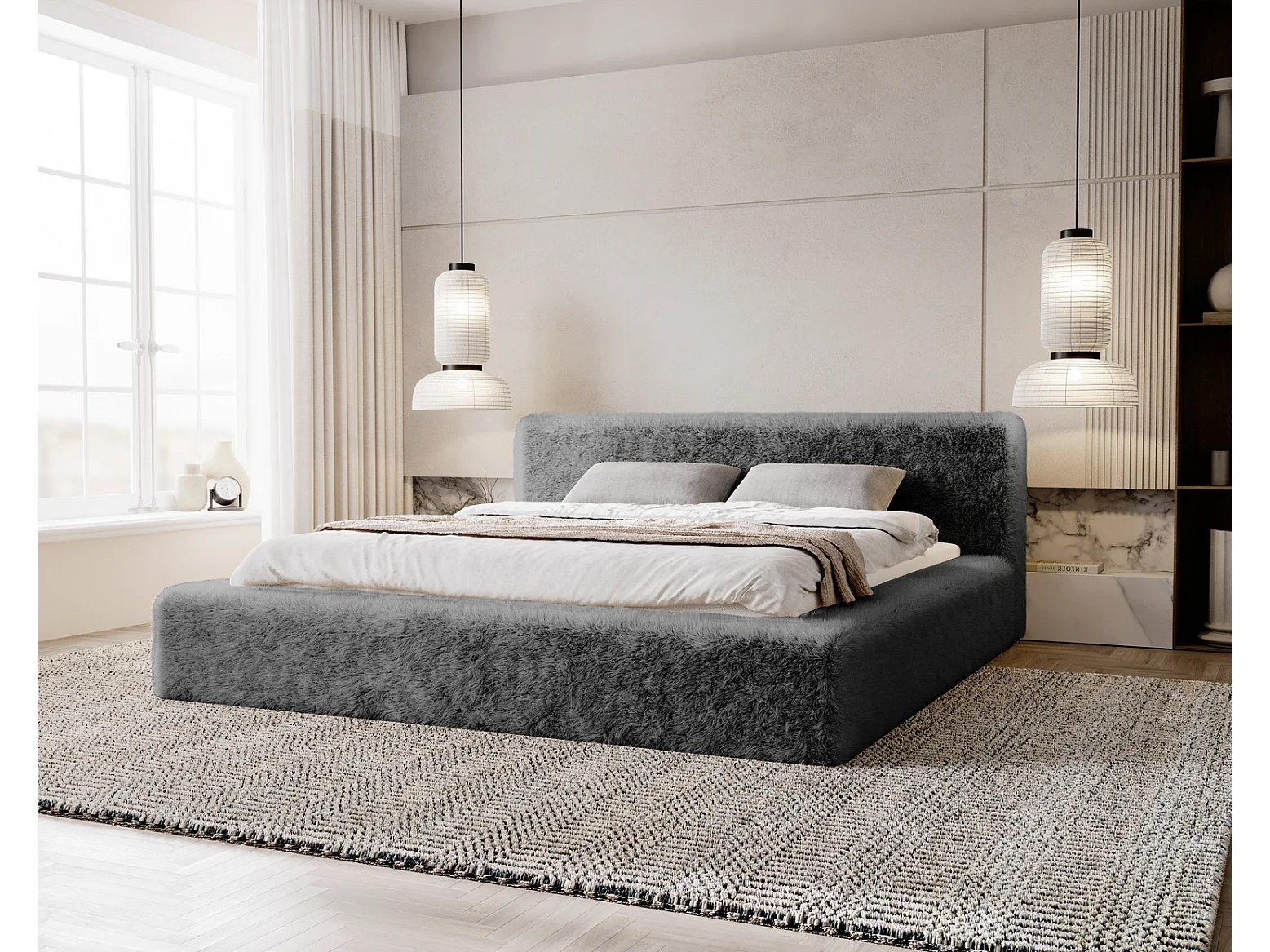Emporius bed 180x200 cm Alros - Stof imitatiebont, gestoffeerd bed Donkergrijs (Lapit 16)