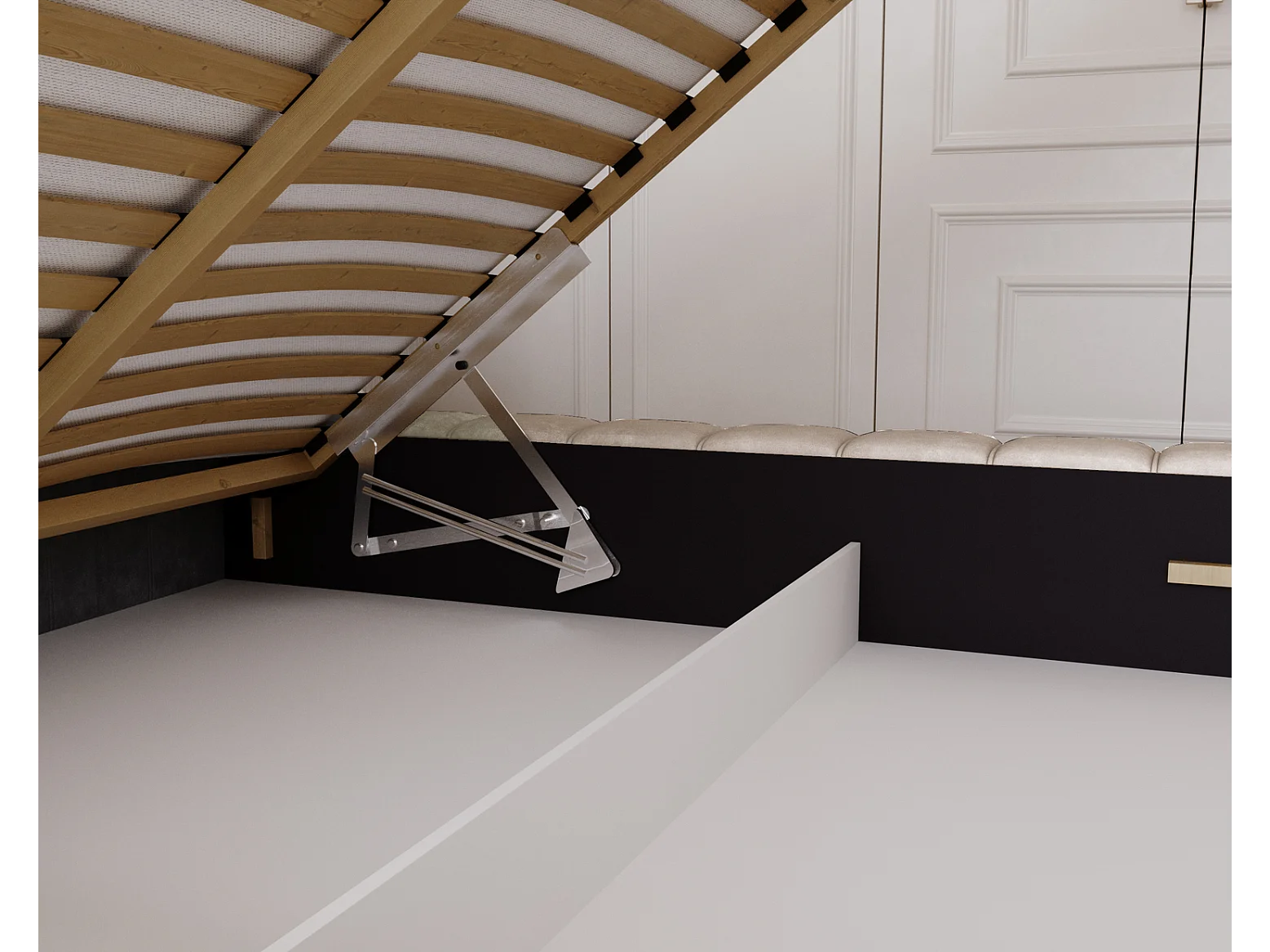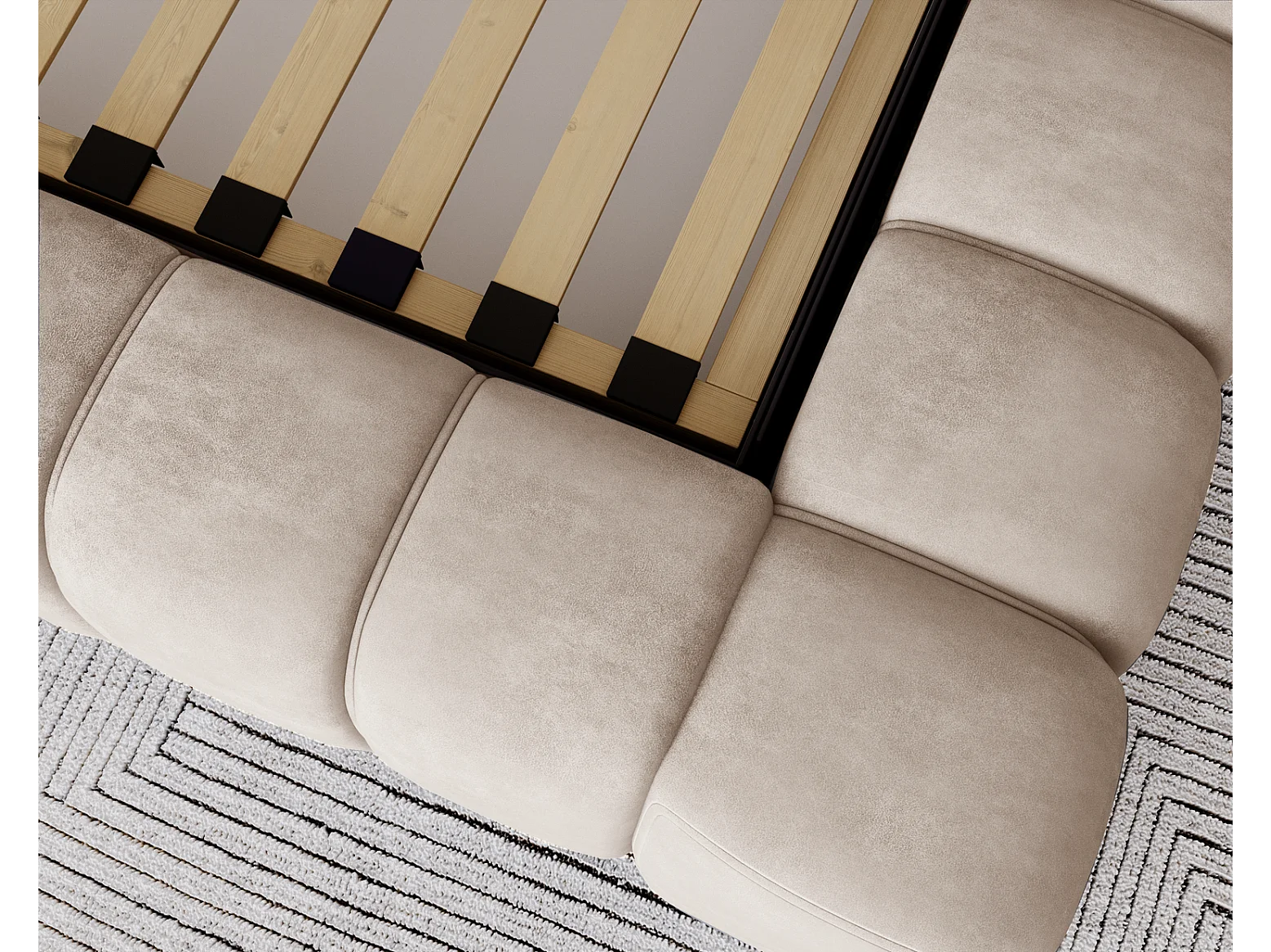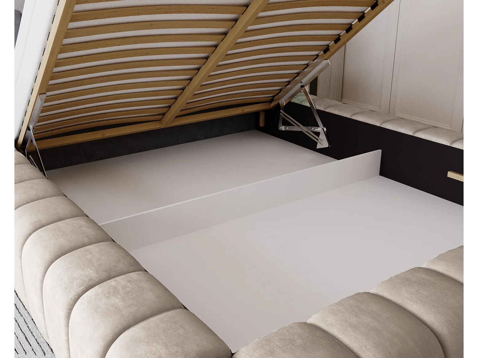 Emporius bed 180x200 met opbergruimte, lattenbodem Como - tweepersoonsbed, dik schuim, fluwelen - Beige (Whisper 2)