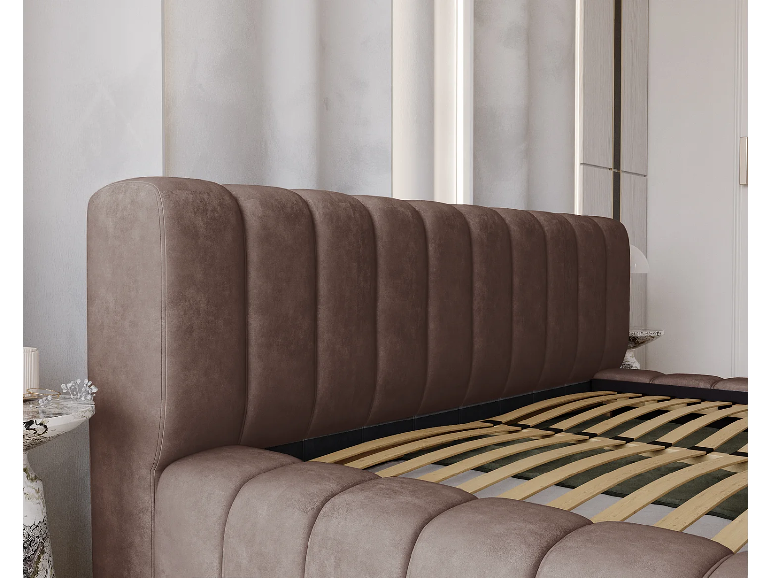 Emporius bed 180x200 met opbergruimte, lattenbodem Como - tweepersoonsbed, dik schuim, fluwelen - Bruin (Whisper 5)