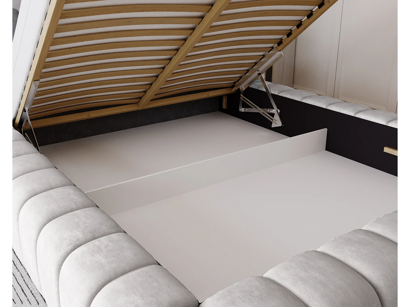 Emporius bed 180x200 met opbergruimte, lattenbodem Como - tweepersoonsbed, dik schuim, fluwelen - Lichtgrijs (Whisper 16)