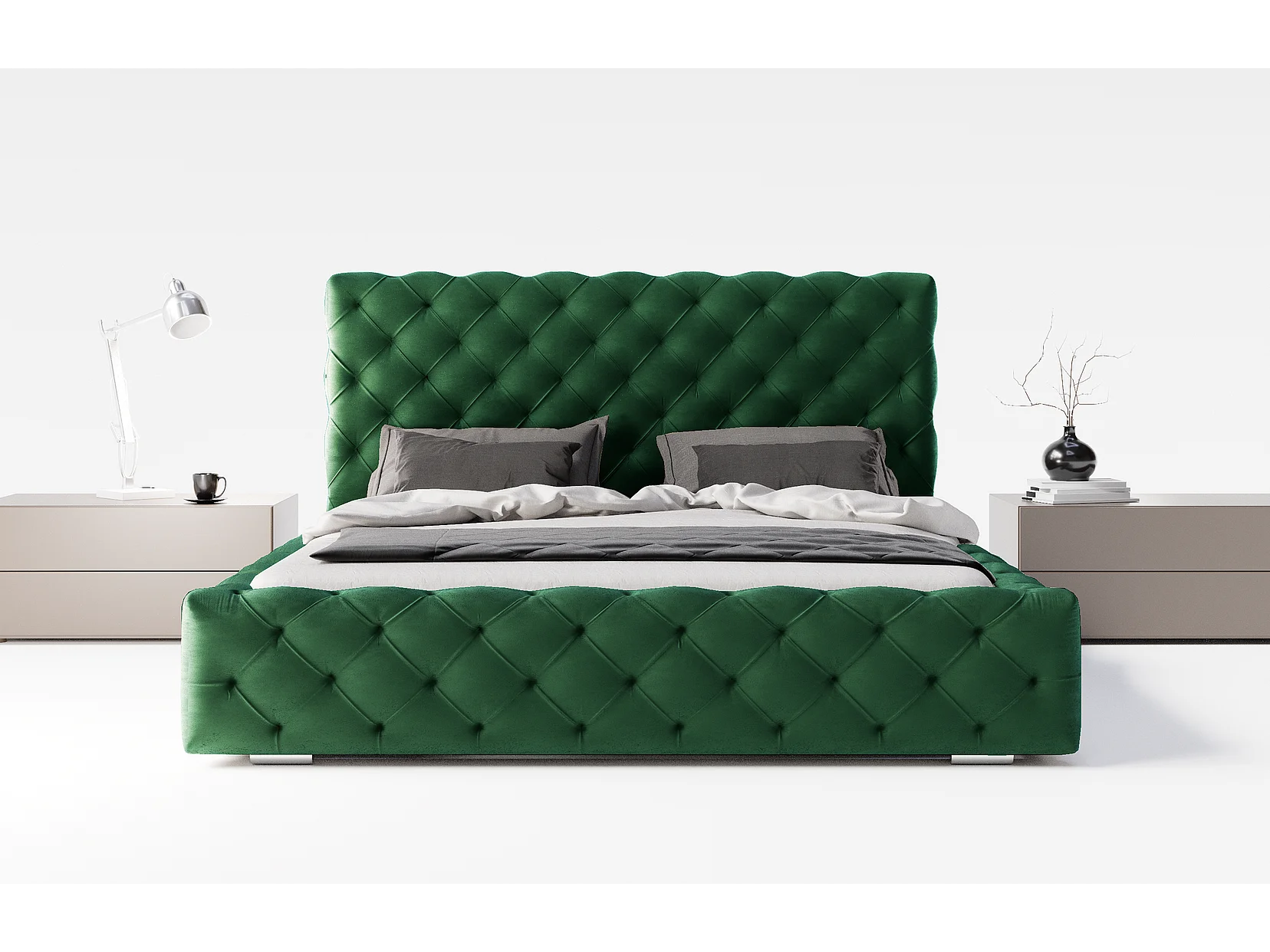 Emporius bed 180x200 Paris - bed met opbergruimte, gestoffeerd bed met lattenbodem - fluwelen Groen (Magic Velvet 2225)