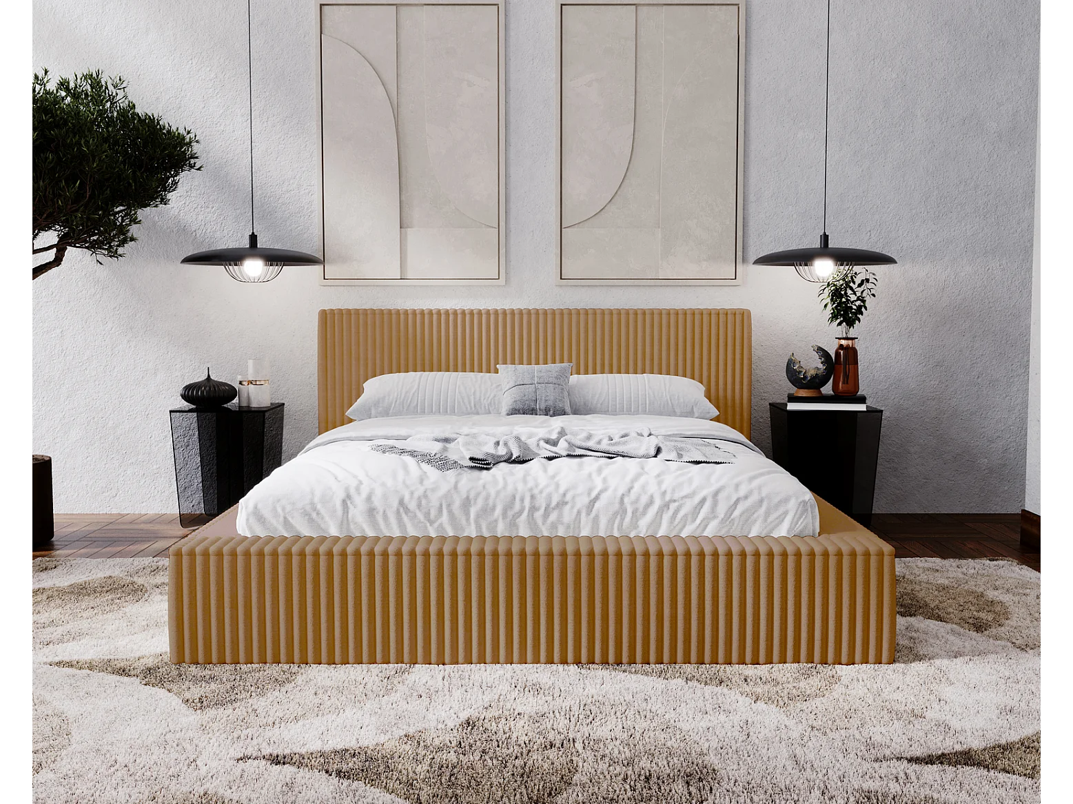 Emporius bed 200x200 met opbergruimte Buffy - Gestoffeerd bed 200 x 200, Oranje (Vito 44)